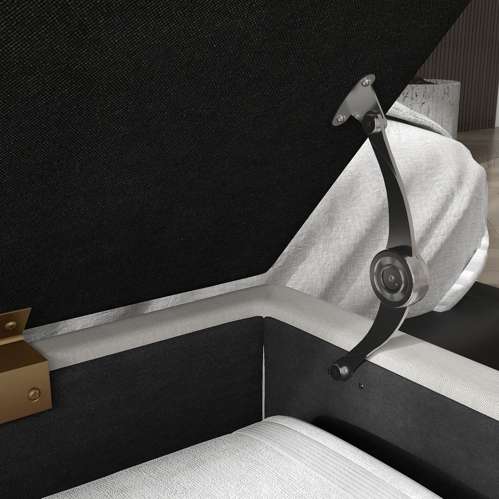 Combina eleganta cu utilitatea cu bancuta [BRAND NAME] tapitata, ideala pentru capatul patului sau hol. Cu dimensiunea de 100 cm si spatiu interior de depozitare, permite organizarea discreta a textilelor sau accesoriilor. Picioarele in forma de arc adauga stabilitate si stil. O piesa versatila si practica pentru case moderne si functionale.