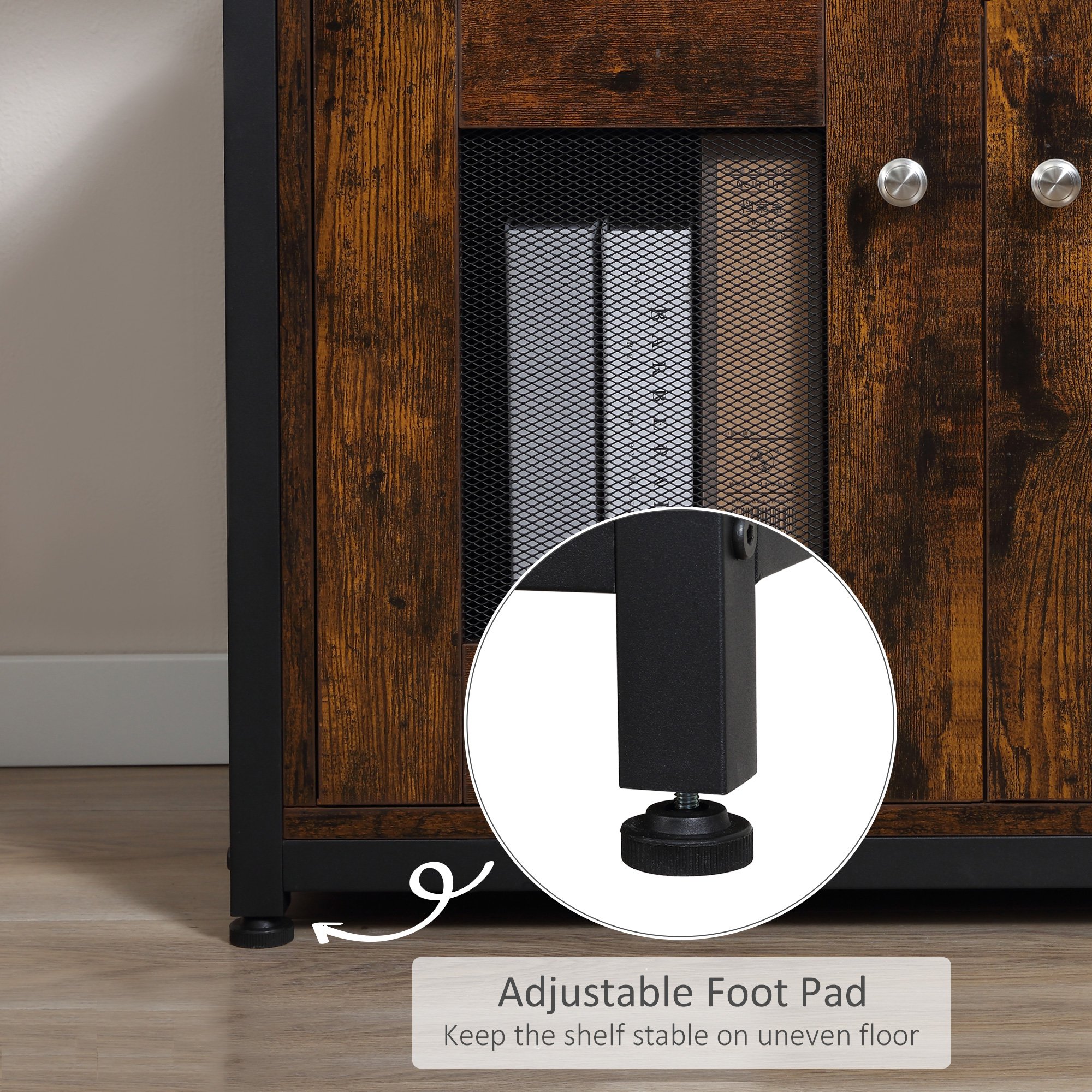 [BRAND NAME] biblioteca stil industrial, 70x30x180 cm, maro poate trona in living. O structura compacta, interesanta, un joc de de forme face ca aceasta biblioteca sa fie reprezentativa pentru stilul industrial. Structura sa robusta, din metal negru este la vedere, combinata cu lemn maro. Dispune de dulap la baza, cu doua usi, precum si de 8 spatii de tip rafturi. Dulapul are insertie de plasa, pentru a observa ce este in interior, zona necompartimentata. [BRAND NAME] biblioteca stil industrial, 70x30x180 cm, maro poate fi mai stabila datorita sistemului antialunecare. Nu este la vedere, dar este practic o masura de precautie. De asemenea, picioarele de sustinere se pot ajusta, prin simpla rotire. Asta va ajuta sa pozitionati biblioteca corect si drept, indiferent de tipul de pardoseala si cat de bine finisata si uniforma este aceasta. Cu asa spatii generoase unde sa va depozitati si asezati simetric lucrurile, veti da farmec incaperii. [BRAND NAME] biblioteca stil industrial, 70x30x180 cm, maro impresioneaza prin simplitatea sa, un atu de efect.