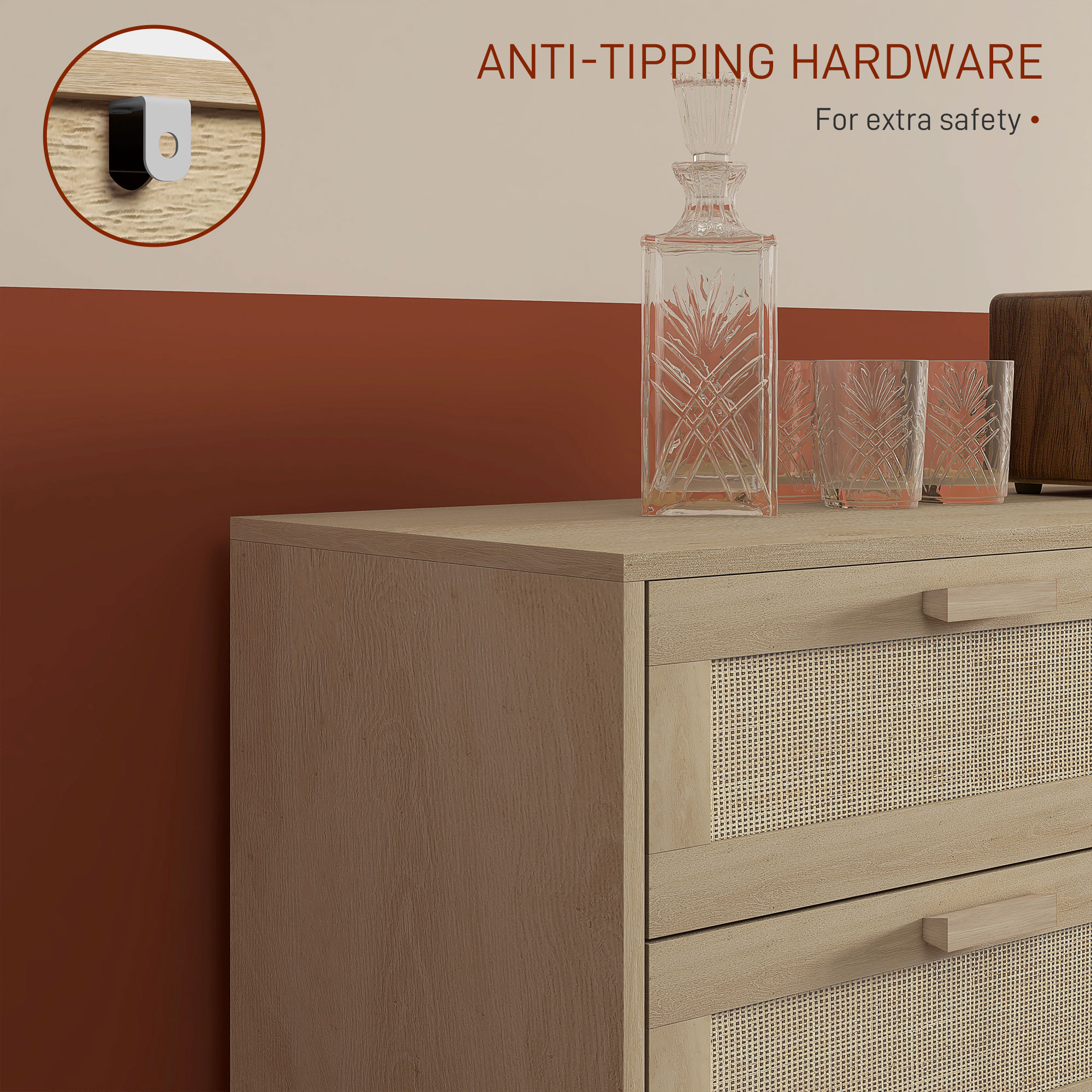 Cauti solutii de depozitare si o actualizare decorativa pentru dormitorul tau? O modalitate de a adauga un pic de stil si organizare este detinerea unui nou dulap. Dispune de sase sertare de depozitare pentru mult spatiu de depozitare - o necesitate pentru a va pastra hainele impreuna in dormitor. Toate sunt prevazute cu manere pentru a se deschide si inchide cu usurinta. Fabricat din cadru din placi aglomerate si picioare din lemn de pin, aceasta comoda este rezistenta. Verificati sertarele dormitorului nostru si luati-va la revedere de la toate dezordinea din jur.
