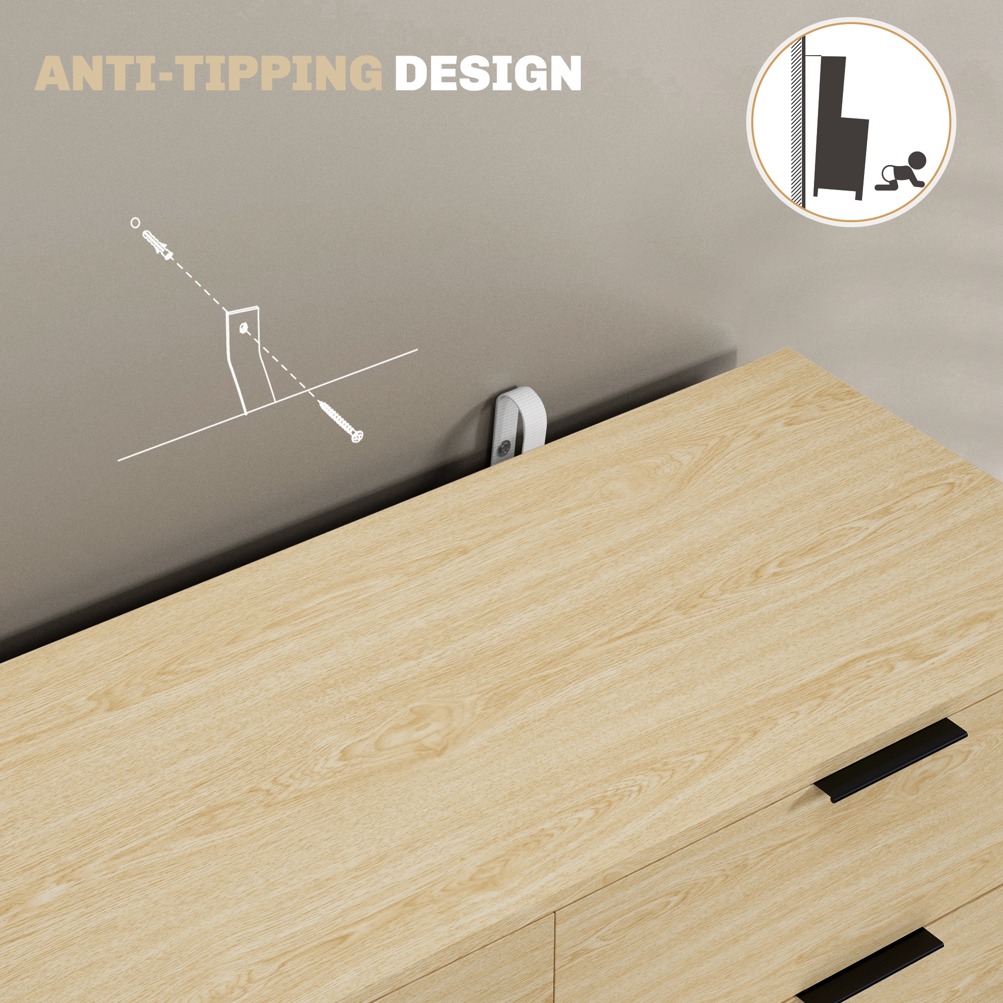 Comoda cu 6 Sertare, Unitate de Depozitare pentru Dormitor, Living, 110x40x75 cm, Lemn Natural
