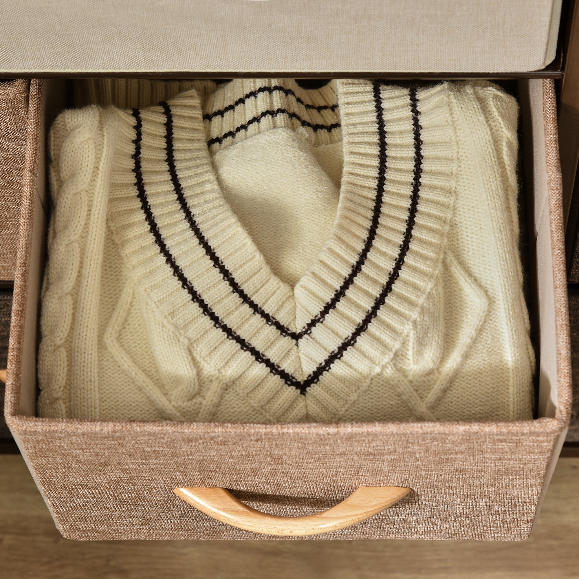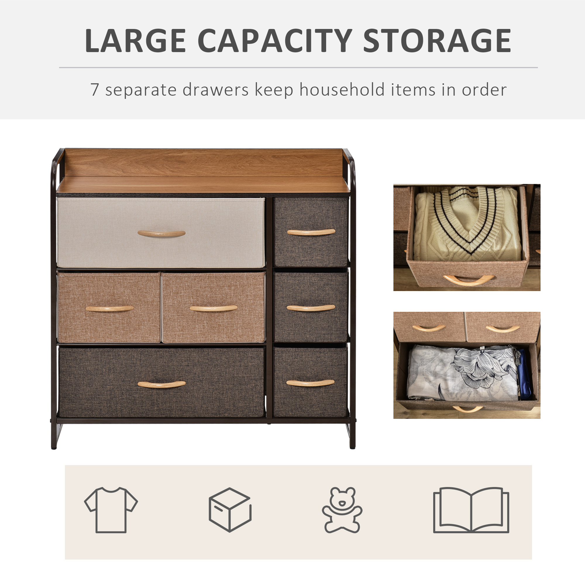 Cauti o solutie pentru a-ti mentine casa ordonata, dar fara a sacrifica stilul? Aceasta comoda cu 7 sertare [BRAND NAME] este perfecta pentru tine! Sertarele din material textil sunt practice si elegante: le puteti plia intr-o clipa si le puteti pastra intr-un spatiu mic atunci cand nu aveti nevoie de ele. Structura metalica cu panouri MDF este stabila si rezistenta, perfecta pentru decorarea atat a dormitorului, cat si a camerei de zi. Pregateste-te sa primesti aceasta comoda acasa pentru a-ti lua ramas bun de la dezordine!