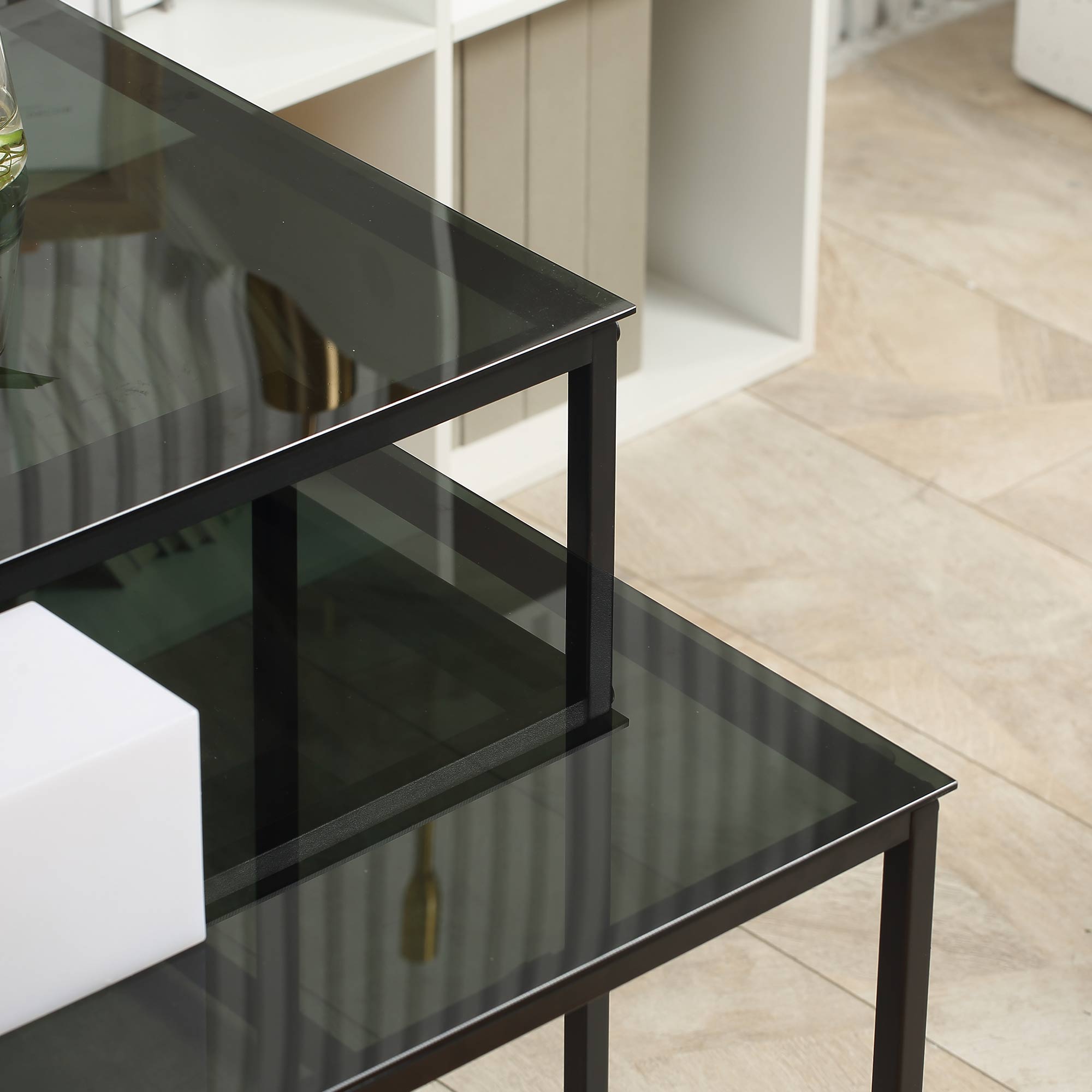 Conferiti stil mediului dvs cu aceste 2 masute de cafea total black. Au un design contemporan si esential, iar datorita culorii lor care nu se demodeaza se integreaza perfect cu orice tip de mobilier. Folositi-le impreuna sau separat si creati o atmosfera moderna si eleganta acasa sau la birou.