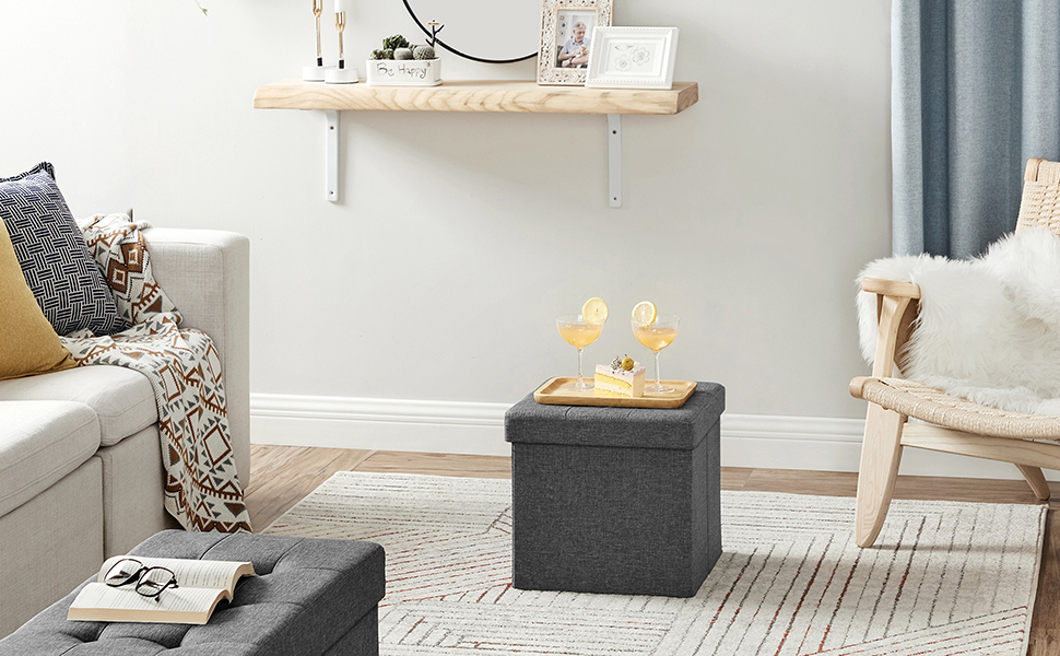 SONGMICS Taburet cu sezut moale, spatiu de depozitare, maxim 300kg, 38x38x38cm, gri inchis