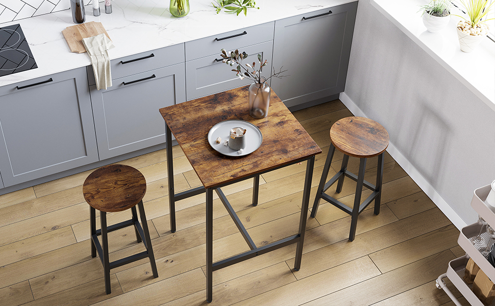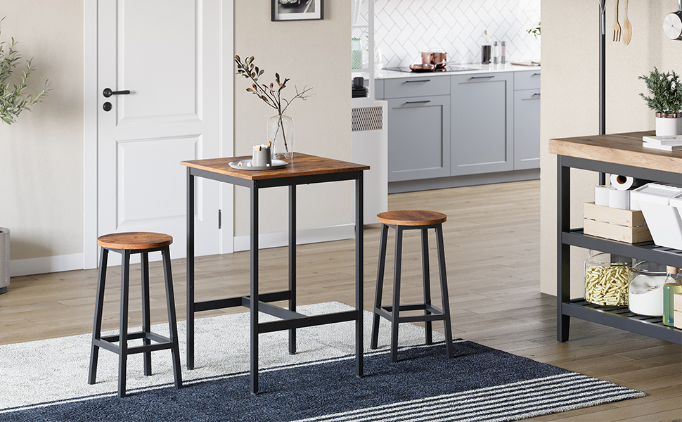 Dimensiuni produs: 60D x 60W x 92H cm  	 Culoare: Maro Rustic + Negru  	 Marca: VASAGLE  	 Masuta de cafea: design masa  	 Caracteristica speciala: Reglabil pe inaltime    Despre acest articol  Solid si puternic:  Dispunand de un blat durabil din PAL si un cadru de otel, acest bar pentru mic dejun are o structura solida, stabila, care poate sustine pana la 100 kg. Versatila:  Aceasta masa patrata de bar este functionala ca masa de mic dejun, masa sau mini cafenea, in timp ce dimensiunea de 60 x 60 x 92 cm o permite sa se potriveasca cu usurinta in bucatarii mici, colturi libere sau langa fereastra pentru o noapte romantica. cu cealalta jumatate a ta Comfort suplimentar:  Bara lunga de dedesubt ofera un loc confortabil pentru a va odihni picioarele atunci cand sunteti asezat la masa; Picioarele reglabile elimina oscilatiile pe podele usor neuniforme si previn zgarierea podelei.Stilul industrial cu un design curat adauga o nota rustica spatiului tau de locuit; o pereche de scaune de bar (nu sunt incluse) de aproximativ 61-66 cm inaltime se vor potrivi bine sub masa si vor permite o asezare confortabila Asamblare simplificata:  Nu va faceti griji cu privire la abilitatile dvs. practice, deoarece am inclus instructiuni clare si piese numerotate, ajutandu-va sa asamblati aceasta masa de bar in aproximativ 15 minute.