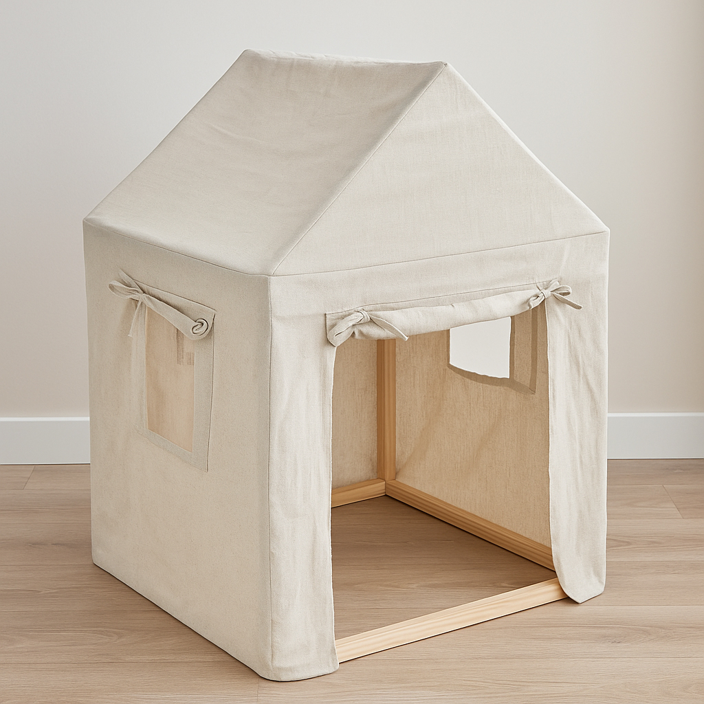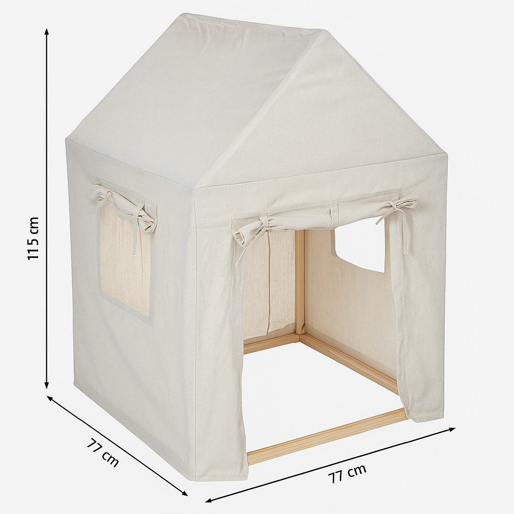 Specificatii tehnice: Marca: Atmosphera Model: Safari Culoare: Bej Material: Structura din lemn de pin, material textil din bumbac si poliester Dimensiuni produs: L.77 x P.77 x H.115 cm Greutate produs: 4,325 kg Asamblare: Da Scurta descriere: Casuta Safari de la Atmosphera este un decor ludic si elegant pentru camera copiilor. Cu structura din lemn de pin si panza bej, ofera un spatiu ideal pentru joaca, relaxare sau lectura, intr-un stil natural si placut. Caracteristici principale: Design safari cu panza naturala si stil minimalist Structura din lemn de pin, stabila si durabila Feronerie textila pentru rularea usilor si ferestrelor Spatiu generos de joaca sau relaxare Ideal de completat cu perne si covor moale