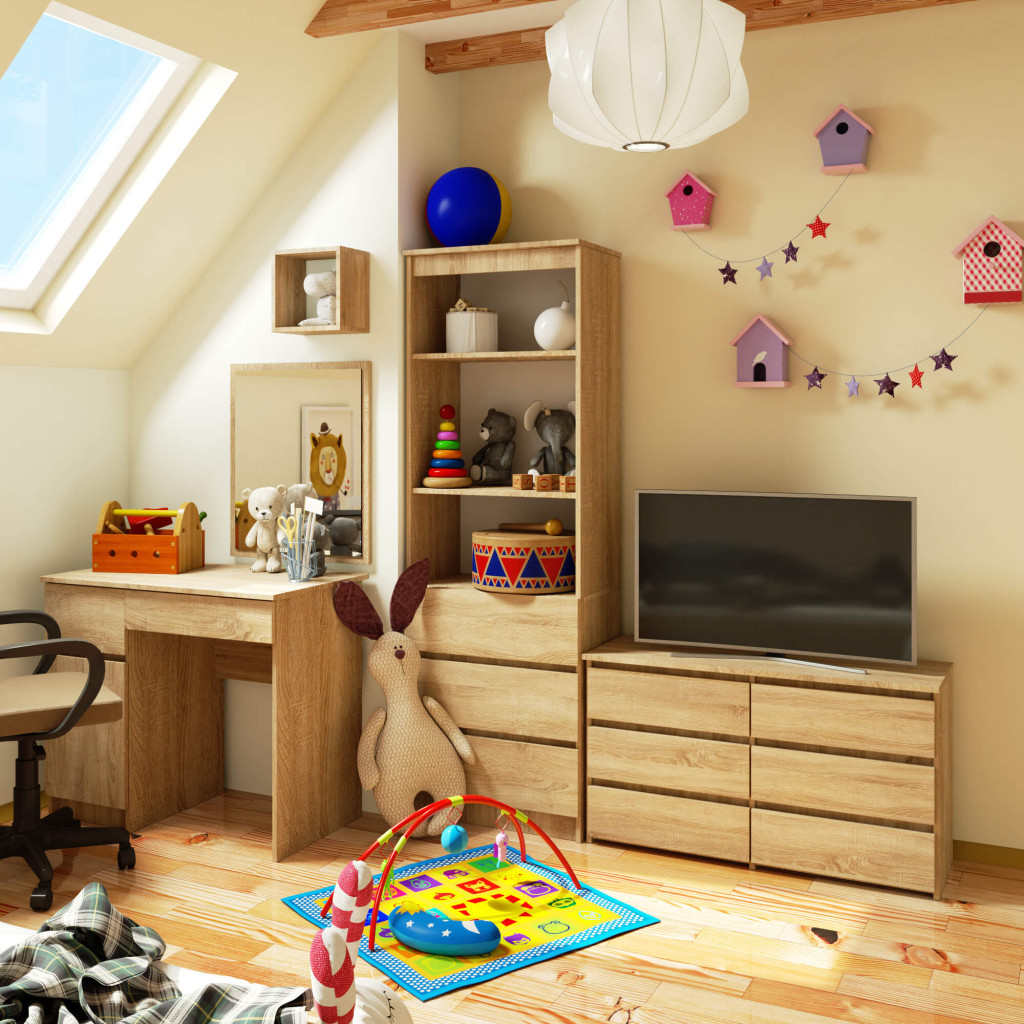 Specificatii tehnice Tip produs: Comoda Model: CL100 Culoare: Stejar sonoma Material: Placa laminata rezistenta la uzura Margini: Protejate cu banda ABS impotriva deteriorarilor Numar sertare: 6 Grosime placa: 16 mm Dimensiuni: 100 x 35 x 57 cm (L x A x I) Sistem glisare: Metalic, cu ghidaje cu bile Scurta descriere Comoda CL100 este o piesa practica si eleganta, ideala pentru dormitor, living sau birou. Cu cele 6 sertare spatioase, ofera suficient loc pentru depozitarea hainelor, accesoriilor, documentelor sau altor obiecte personale. Construita din placa laminata rezistenta la uzura si protejata cu margini ABS, comoda este durabila si usor de intretinut. Designul simplu, in nuanta naturala de stejar sonoma, adauga caldura si rafinament oricarui interior, integrandu-se armonios atat in decorurile moderne, cat si in cele clasice. Caracteristici principale Design modern si functional 6 sertare spatioase pentru organizare eficienta Material rezistent la uzura si zgarieturi Margini protejate cu banda ABS Finisaj mat, natural, in nuanta stejar sonoma Montaj simplu, instructiuni incluse