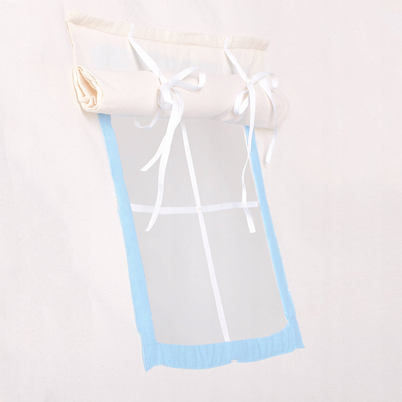 Cort copii Sersimo stil indian Teepee Tent cu fereastra, covoras gros si 2 perne, alb albastru