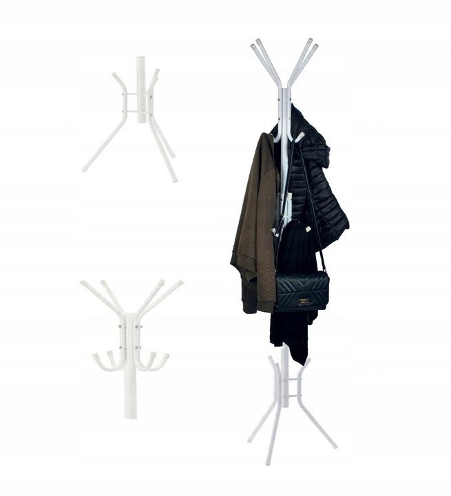 Specificatii:   	 Inaltime: 178 cm - inaltime optima pentru depozitarea comoda a hainelor si accesoriilor mai lungi.  	 Culoare: Alb - o culoare universala care se potriveste diverselor aranjamente si adauga prospetime interiorului.  	 Material: Metal - asigura durabilitate si stabilitate.  Cuierul de sine statator combina functionalitatea cu eleganta. Portabilitatea sa usoara il face sa se potriveasca perfect intr-o varietate de spatii – holuri, dressinguri sau vestiare. Designul sau modern pune in valoare orice interior, adaugand o nota chic.Carligul ofera un spatiu de depozitare convenabil pentru paltoane, jachete, esarfe si genti de mana. Baza solida cu trei picioare asigura stabilitate, iar designul elegant il face un element decorativ al oricarei incaperi.Carligul de sine statator are cinci manere solide care ofera un spatiu de depozitare convenabil pentru mai multe articole de imbracaminte in acelasi timp. Cele noua carlige faciliteaza agatarea paltoanelor, jachetelor, esarfelor si gentilor de mana, organizand spatiul ordonat si functional. Fiecare maner este stabil si solid, asigurand ca umerasul va tine chiar si articole de imbracaminte mai grele, fara a-si pierde forma eleganta.Cuierul se distinge prin culoarea sa universala, care se potriveste perfect cu o varietate de stiluri interioare – de la modern la clasic. Cu designul sau minimalist, dar elegant, cuierul se potriveste perfect atat in camere luminoase, spatioase, cat si in aranjamente mai discrete, confortabile. Albul ii confera un aspect vizual usor, care evita efectul de a fi coplesitor chiar si in spatii mai mici.