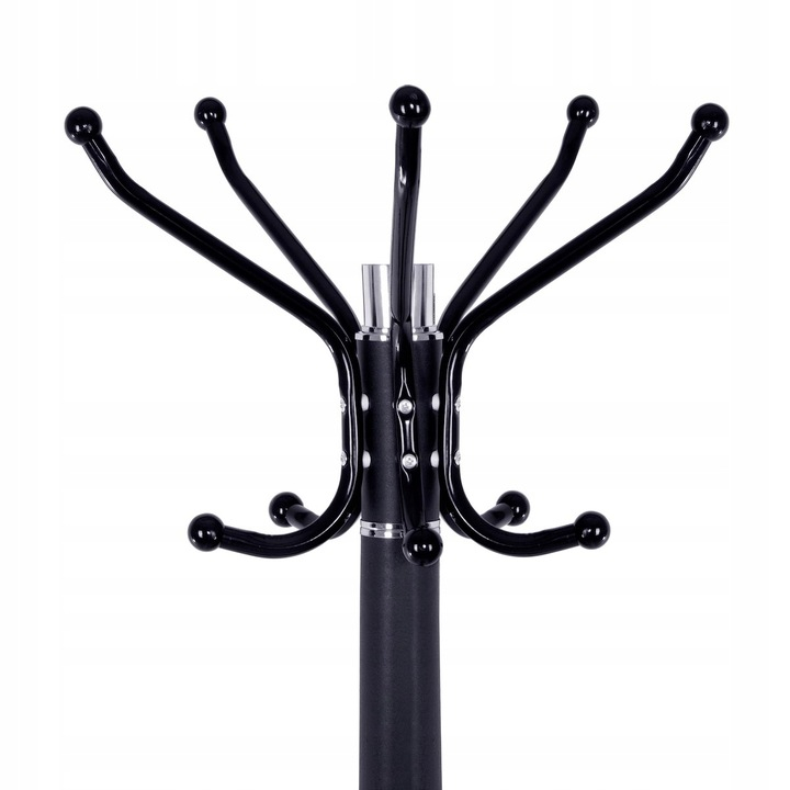 Inaltime totala: 176 cm  	 Diametrul bazei: 37 cm  	 Inaltimea suportului: 2 cm  	 Lungimea bratelor: 24 cm, 11 cm  	 Diametrul tubului de la cadru: 6 cm  	 Greutatea cuierului: 7,75 kg  	 Material: metal, plastic, marmura  	 Numar de carlige: 14  	 Sarcina per carlig: 1,5kg  	 Asamblare: produsul este destinat pentru autoasamblare  	 Culoare: cadru negru mat, brate negre lucioase, marmura neagra   Cuierul poate fi amplasat pe coridor sau in camera de langa usa de intrare. Poate fi utilizat pentru imbracaminte exterioara sau palarii. Un aspect modern ce va adauga cu siguranta farmec unui interior deja decorat. Un avantaj suplimentar al cuierului este greutatea acestuia, care va permite sa schimbati cu usurinta locul sau. Pentru ca suportul sa fie cat mai stabil, baza este din marmura. Designul modern si utilizarea materialelor de cea mai buna calitate garanteaza ca va rezista mult timp. Functioneaza excelent acasa, intr-un magazin, intr-un birou sau in salile de asteptare.   	 Echipat cu pana la 14 carlige pentru agatarea hainelor  	 Baza stabila, materiale robuste  	 Culori universale, potrivite pentru toate interioarele  	 Caracteristici de siguranta pentru a preveni alunecarea si deteriorarea hainelor  	 Greutate redusa, usor de transportat  	 Ideal pentru acasa, birou, magazin, salon de infrumusetare