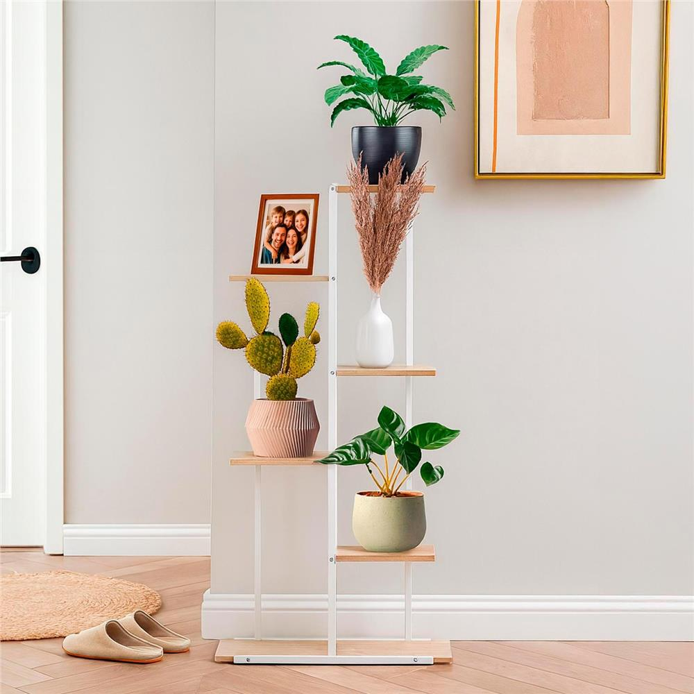 Specificatii tehnice: Material: Metal, MDF Culoare: Alb, maro deschis Numar rafturi: 6 Capacitate maxima: 40 kg Dimensiuni totale: 60x20x113 cm Inaltime rafturi (de la sol): 1,5 / 24,5 / 46,5 / 69 / 91,5 / 113 cm Dimensiuni rafturi mici: 26x17 cm Dimensiune raft mare: 60x20 cm Grosime blat: 1,5 cm Dimensiuni profil cadru: 1,5x1,5 cm Toleranta dimensiuni: ±2% Scurta descriere: Etajera cu 6 rafturi din metal si MDF combina eleganta cu functionalitatea. Structura alba, completata de rafturi in nuante calde de maro deschis, aduce luminozitate si stil in orice incapere. Este ideala pentru depozitarea cartilor, plantelor, decoratiunilor sau obiectelor practice, potrivita pentru living, dormitor, birou sau balcon. Caracteristici principale: Design modern si aerisit 6 rafturi din MDF rezistent Cadrul metalic stabil si durabil Capacitate mare de incarcare – pana la 40 kg Usor de montat, include toate accesoriile necesare Perfecta pentru decor, carti sau organizare eficienta