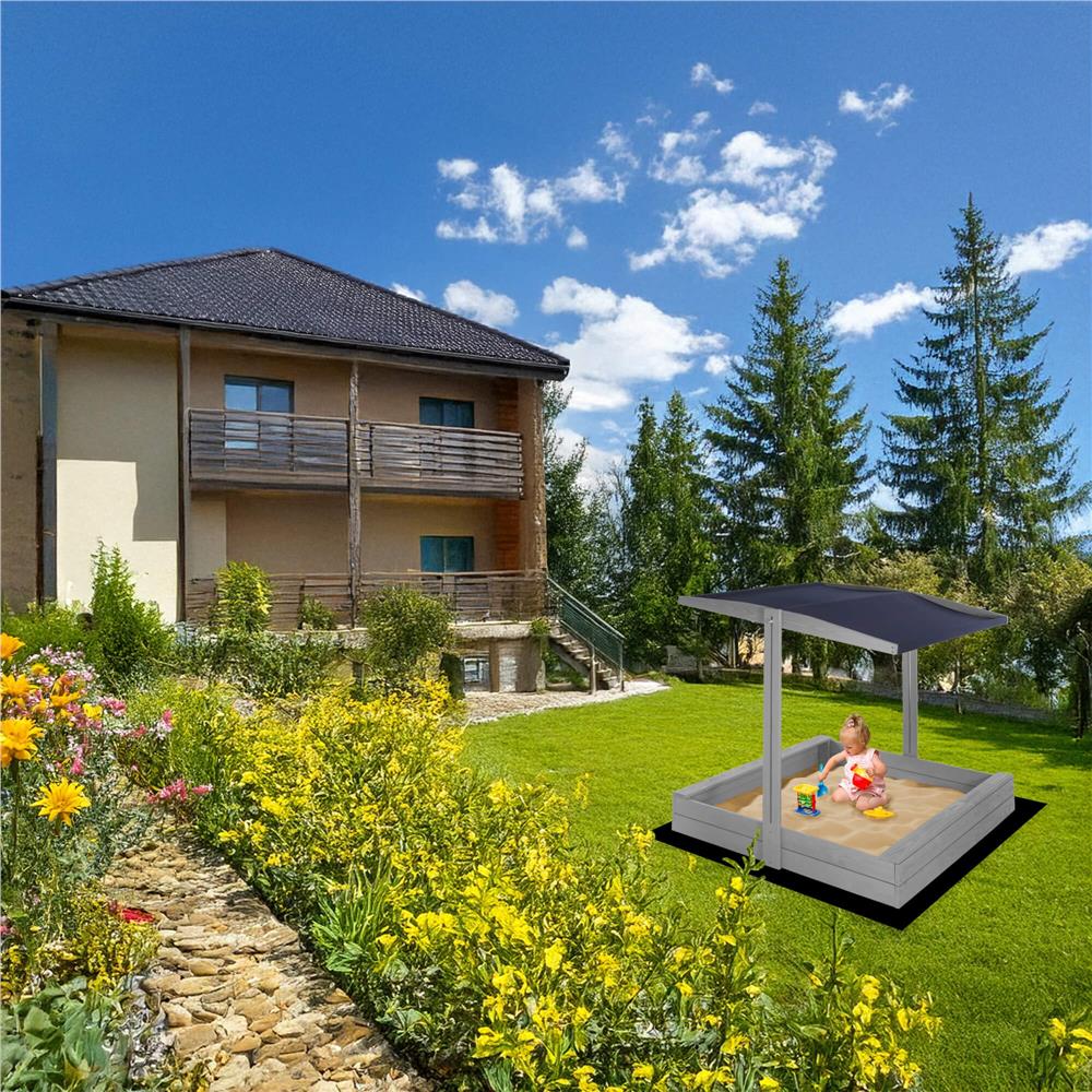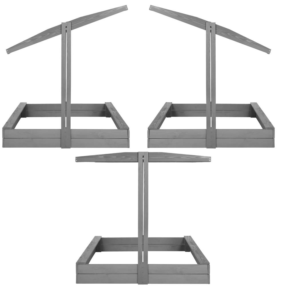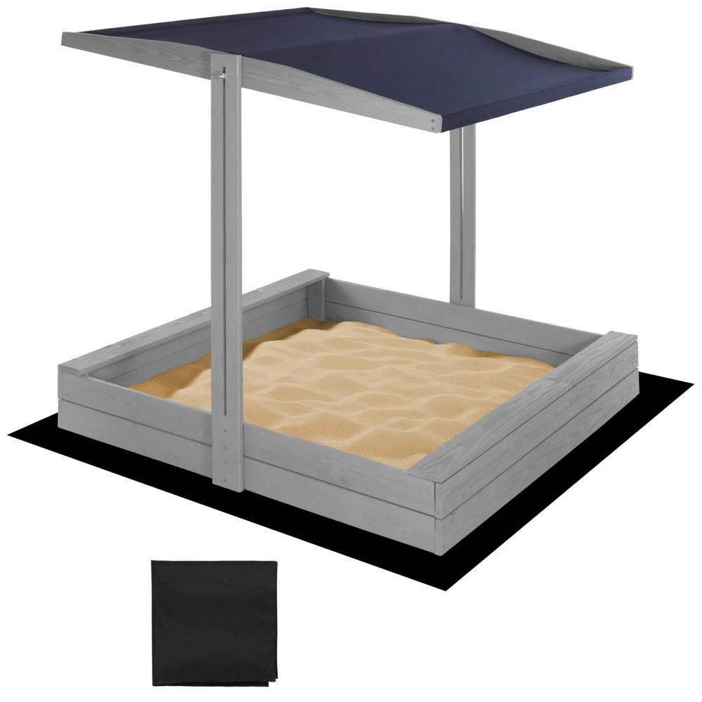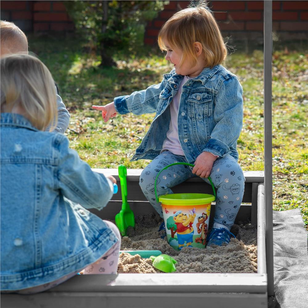 Specificatii tehnice: Tip produs: Lada de nisip cu baldachin si capac Material: Lemn de conifere tratat ecologic Culoare lemn: Gri Culoare acoperis: Albastru inchis Certificare: CE Potrivit pentru: Copii peste 18 luni Dimensiuni exterioare: 120 x 120 x 120 cm Inaltime bancute: 20 cm Dimensiuni baldachin: 120 x 120 cm Grosime scanduri: 1,8 cm Latime scanduri: 8,5 cm Latime sezut: 8,5 cm Dimensiuni geotextil (inclus): 150 x 160 cm Capacitate aproximativa: 240 litri Greutate estimata: ~13-15 kg Accesorii incluse: Geotextil negru, set montaj complet Functii: Acoperis reglabil, inchidere completa, bancute laterale fara spatar Scurta descriere: Aceasta lada de nisip din lemn masiv este alegerea ideala pentru gradina sau curte. Echipata cu baldachin reglabil si bancute laterale, asigura un loc sigur si placut pentru joaca. Poate fi inchisa dupa utilizare pentru a proteja nisipul. Produs fabricat in Polonia, finisat cu grija si certificat CE pentru siguranta copiilor. Caracteristici principale: Lemn tratat ecologic, rezistent la intemperii Acoperis textil ajustabil pentru umbra si protectie Functie de inchidere – capac rabatabil din bancute Include geotextil pentru izolarea solului Marginile sunt rotunjite pentru siguranta copiilor Design compact, usor de integrat in gradina Capacitate de pana la 240 litri de nisip Certificare CE – sigur pentru copii Montaj facil cu gauri preforate Cadou perfect pentru zile de nastere sau vara