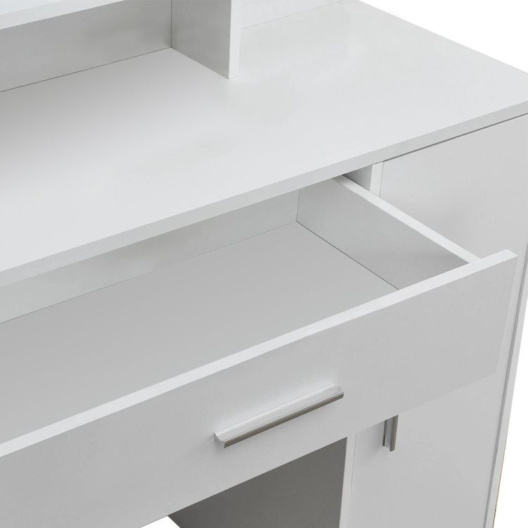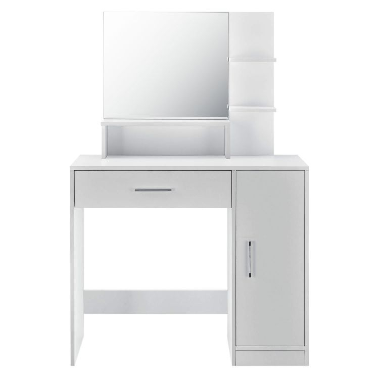 Specificatii tehnice: Cod produs: PWJJDT0012 Material: Placa aglomerata laminata Culoare: alb Greutate produs: 30 kg Dimensiuni ambalaj: 100 x 75 x 15 cm Dimensiuni produs: 90 x 38x 138 cm Scurta descriere: Aceasta toaleta cosmetica moderna este solutia ideala pentru pastrarea in ordine a produselor de machiaj si a accesoriilor. Oglinda generoasa este flancata de rafturi deschise pentru acces rapid, iar compartimentarea cu sertar si dulap ofera un plus de functionalitate. Constructia solida si finisajul alb se potrivesc perfect in dormitor, dressing sau zona de machiaj. Caracteristici principale: Design elegant si functional, potrivit pentru orice interior Blat spatios si oglinzi mari pentru confort in utilizare Rafturi laterale pentru organizare vizibila Sertar glisant si dulap cu usa pentru depozitare discreta Material rezistent, cu suprafata usor de curatat Ambalaj ranforsat pentru transport sigur Ideal ca piesa centrala in dormitor sau dressing