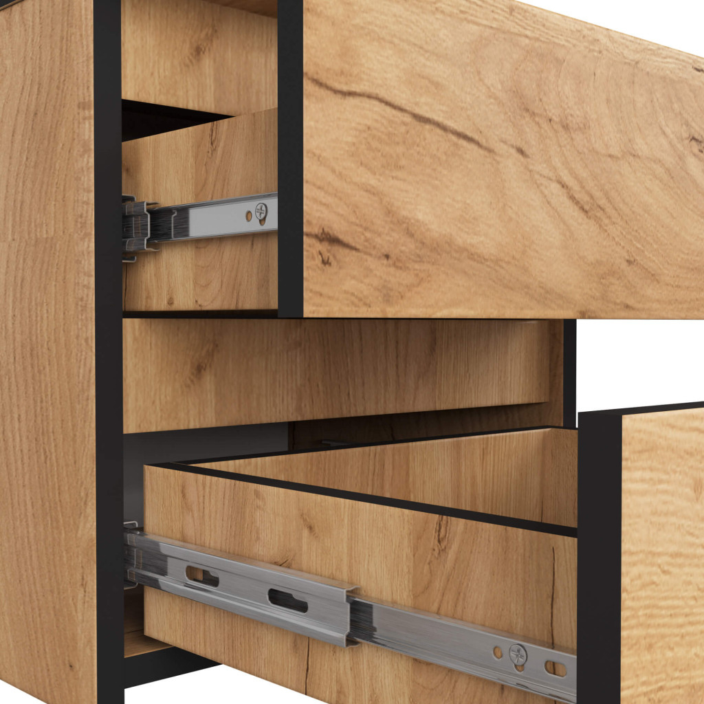 Specificatii tehnice Model: CL2 Material: PAL laminat Finisaj: Mat Culoare: Stejar craft Latime: 40 cm Adancime: 35 cm Inaltime: 40 cm Numar sertare: 2 Grosime placa: 16 mm Margine: ABS Functii suplimentare: Blocare sertare Scurta descriere Noptiera CL2 din gama CLP este o piesa compacta si practica, ideala pentru dormitoare moderne sau camere de tineret. Realizata integral din PAL laminat rezistent la uzura, in finisaj elegant stejar craft, aduce un aspect natural si cald in incapere. Cele doua sertare spatioase ofera loc suficient pentru depozitarea accesoriilor, cartilor sau obiectelor personale, pastrand ordinea si armonia langa pat. Caracteristici principale Constructie din PAL laminat durabil, rezistent la zgarieturi Design simplu si elegant in nuanta stejar craft Doua sertare incapatoare cu glisiere metalice Margini protejate cu ABS pentru rezistenta sporita Finisaj mat, usor de curatat si intretinut Dimensiuni compacte, ideale pentru spatii mici Suprafata superioara perfecta pentru veioza sau decoratiuni Montaj simplu, cu instructiuni incluse