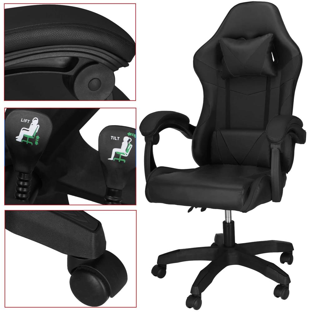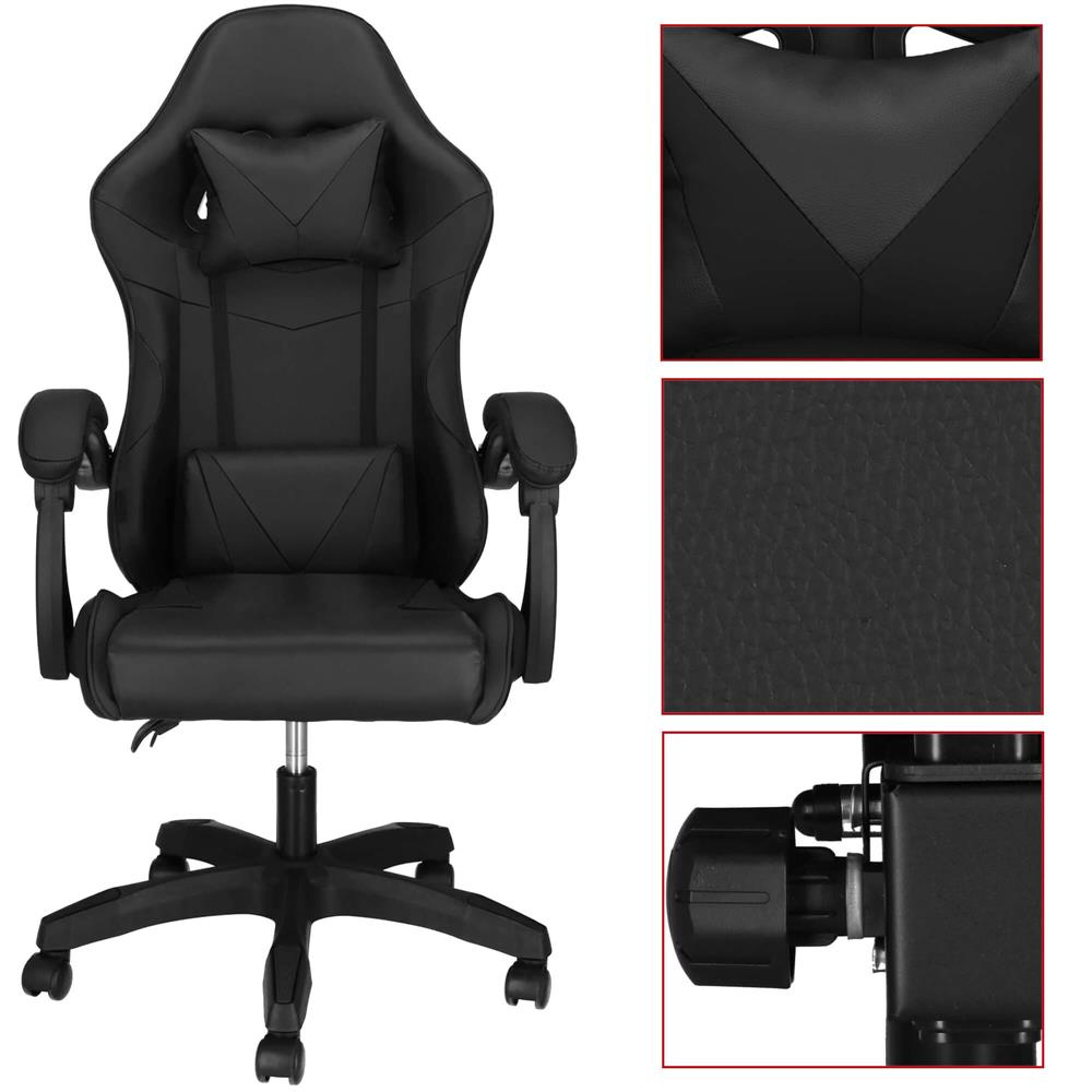 Scaun birou pentru gaming, ergonomic, suport lombar si tetiera, 114-123x55x50 cm, negru