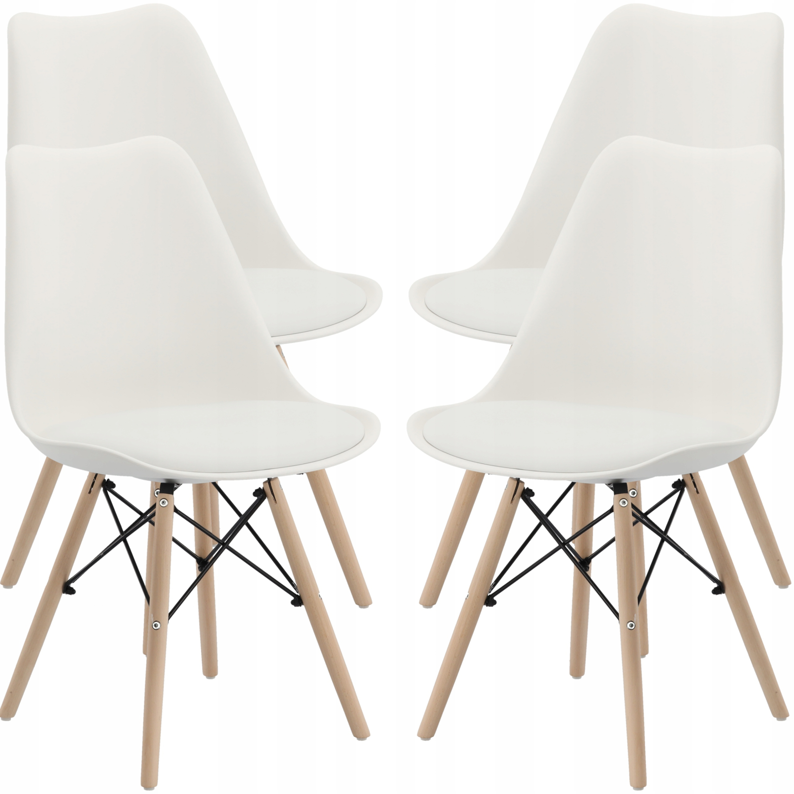 Set 4 scaune de bucatarie, design scandinav modern, sezut cu burete, alb