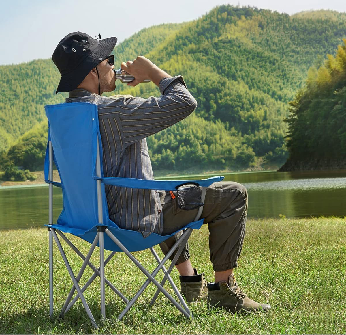 Detalii despre produs: Culoare: Albastru Material: Otel, tesatura Oxford Dimensiuni per scaun: 54 x 86 x 97 cm (P x L x I) Dimensiuni per scaun atunci cand este pliat: 13 x 90 x 13 cm (P x L x A) Dimensiunea scaunului: 42 x 42 cm (P x L) Inaltimea spatarului: 54 cm Distanta dintre scaun si podea: 43 cm Greutate per scaun: 2,6 kg Capacitate maxima de incarcare statica per scaun: 150 kg Despre acest articol Acest scaun de pescuit ergonomic este conceput pentru a oferi un confort optim de asezare.Cadru de otel, tuburi cu grosimea peretelui de 0,8 mm - foarte rezistent; Tesatura Oxford 600D cu acoperire rezistenta la apa - foarte rezistenta la uzura si durabila. Scaunul de camping suporta pana la 150 kg.Scaunul pliabil compact cantareste doar 2,6 kg si poate fi pliat si depozitat in geanta de transport inclusa (dimensiune pliat: 13 x 90 x 13 cm), astfel incat sa il puteti aseza cu usurinta in masina sau sa-l agatati de rucsac.Pur si simplu desfaceti scaunul de plaja atunci cand il utilizati - fara asamblare complicata. In plus, scaunul are un suport pentru bauturi pentru a-ti depozita bautura, telefonul mobil, sticla de apa sau alte obiecte mici.Aceste doua scaune pliabile de camping raspund nevoilor diferite - pescuit langa rau, plaja dupa-amiaza pe terasa, drumetii sau spectacole de fotbal, toate fara probleme.