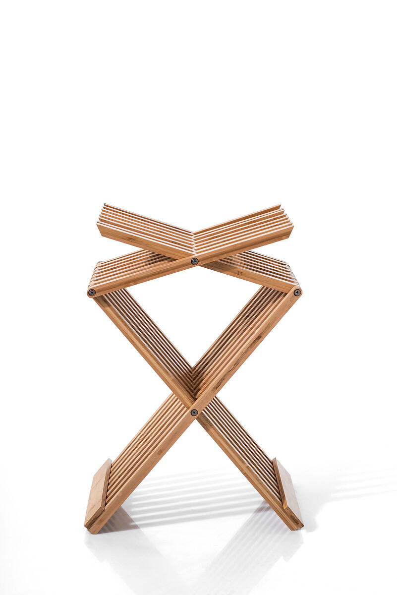 Specificatii tehnice    Marca:  5Five  Culoare:  Maro caramel  Material:  Bambus  Dimensiuni produs:  L. 40 x P. 32 x H. 45 cm  Greutate produs:  3.8 kg  Capacitate maxima suportata:  110 kg  Caracteristici:  Pliabil, usor de depozitat   Scurta descriere   Acest taburet pliabil din bambus marca 5Five este alegerea ideala pentru spatii mici sau pentru utilizare ocazionala. Designul sau natural si finisajul maro caramel il fac usor de integrat in orice decor, iar structura solida sustine pana la 110 kg.   Caracteristici principale    	 Fabricat din bambus durabil  	 Sustine pana la 110 kg  	 Se pliaza complet pentru depozitare usoara  	 Design compact si natural  	 Finisaj maro caramel elegant