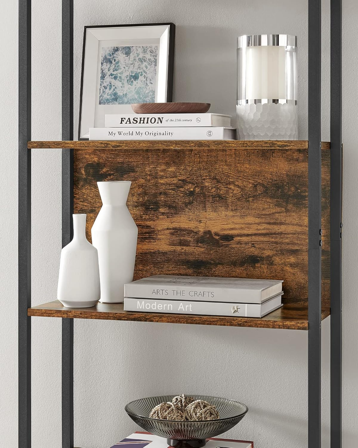 Specificatii tehnice   Brand:  VASAGLE  Model:  LLS113B01  Tip produs:  Biblioteca / raft vertical  Material:  PAL (placa aglomerata) + otel  Dimensiuni:  60x24x186 cm  Greutate produs:  13.1 kg  Capacitate maxima statica:  138 kg (23 kg per polita)  Numar rafturi:  6  Montaj:  Pe podea  Stil:  Industrial  Finisaj:  Mat  Culoare:  Maro rustic + negru  Forma:  Trapezoidala  Instructiuni intretinere:  Se sterge cu o carpa uscata  Accesorii incluse:  Kit montaj, sistem anti-rasturnare, instructiuni          Scurta descriere:  Biblioteca VASAGLE in stil industrial este ideala pentru birouri, holuri sau camere de zi. Cu o structura robusta din otel si PAL, ofera 6 rafturi spatioase pentru carti, decoratiuni sau dosare. Designul vertical optimizeaza spatiul, iar cadrul negru mat combinat cu politele maro rustic aduce un contrast modern si elegant in orice incapere.   Caracteristici principale:  Structura durabila din otel si PAL de calitate 6 rafturi incapatoare, fiecare suportand pana la 23 kg Design vertical care economiseste spatiu Stabilitate sporita cu sistem anti-rasturnare inclus Cadru metalic negru cu finisaj mat Rafturi maro rustic cu detalii decorative pe spate Montaj rapid cu piese numerotate si instructiuni clare Potrivita pentru birou, living, hol sau dormitor