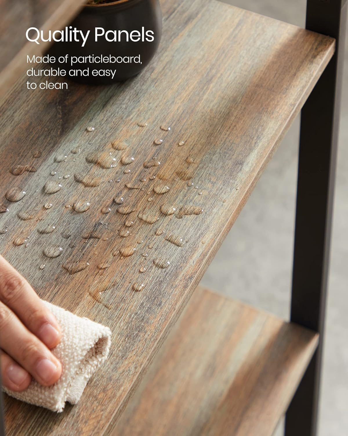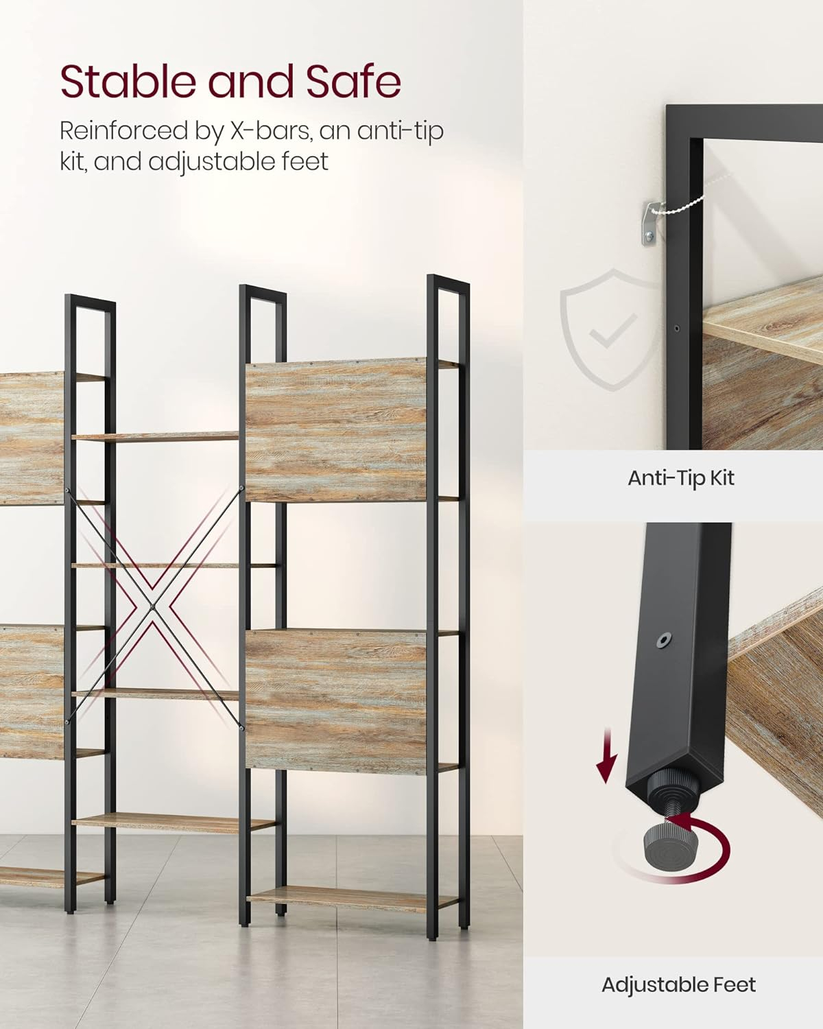 Specificatii:   	 Culoare: stejar cu boabe albastre, negru  	 Material: Placi MDF , otel  	 Dimensiune produs: 24 x 158 x 166 cm (L x l x H)  	 Greutate produs: 26,5 kg  	 Capacitatea maxima de incarcare statica a fiecarui raft: 10 kg  	 Capacitate maxima de incarcare statica totala: 140 kg  	  Continutul pachetului:   	 1 x Biblioteca  	 1 x Geanta pentru accesorii  	 1 x Kit anti-rasturnare  	 1 x Instructiuni    Despre acest articol Aceasta unitate de rafturi, cu dimensiunea de 24 x 158 x 166 cm, cu 14 rafturi amestecate, ofera mult spatiu pentru a afisa in mod elegant ciucuri, fotografii, suveniruri de sarbatori si multe altele.Otelul robust si placile de particule rezistente formeaza o structura stabila, intarita in continuare de barele X de pe spate. Biblioteca poate sustine pana la 10 kg pe raft, pentru un total de 140 kg.Placile atasate pe rafturi asigura ca articolele dvs. nu se prabusesc. Picioarele reglabile mentin raftul la nivel, iar kitul anti-rasturnare previne rasturnarea raftului pentru un mediu mai sigur.Asezati acest raft cu carti in camera de zi pentru a afisa decoratiuni si alte decoruri, in birou pentru a organiza documentele, in dormitor pentru lucrurile personale sau doar in dulap pentru mai mult spatiu pentru a va organiza lucrurile.Cu piese etichetate, instructiuni clare, un ghid video intuitiv si instrumente de asamblare incluse, asamblarea acestui raft este simpla si usoara.