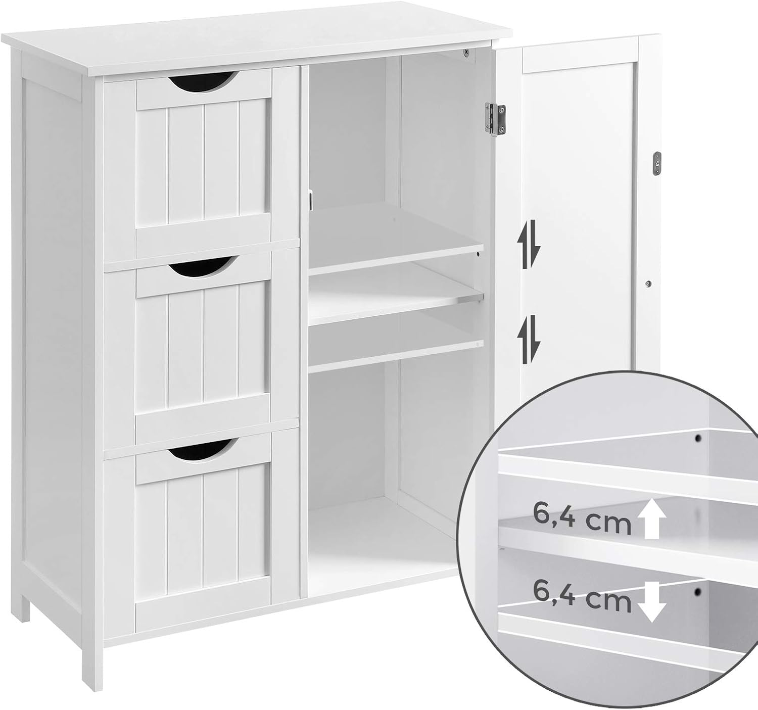 Detalii produs: Culoare: Alb Material: MDF (panouri de fibre cu densitate medie) Dimensiuni: 60 x 30 x 81 cm (L x l x i) Greutate: 13,9 kg Capacitate totala maxima de incarcare statica: 20 kg Datorita panourilor solide din MDF, acest dulap de baie este puternic si stabil; Protectia impotriva rasturnarii inclusa ofera un plus de stabilitate si siguranta. Datorita designului sau compact, acest dulap de baie ocupa o suprafata de 30 x 60 cm, dar ofera spatiu amplu de depozitare. Cu acest dulap, puteti profita la maximum de spatiul limitat. Albul si designul minimalist creeaza un dulap simplu, dar distinctiv, pe care il puteti integra cu usurinta in locuinta dvs. - in baie, in camera de zi sau pe hol. Nu va faceti griji cu privire la asamblare! Cu piese etichetate si instructiuni clare, puteti asambla rapid aceast dulap cu sertare.