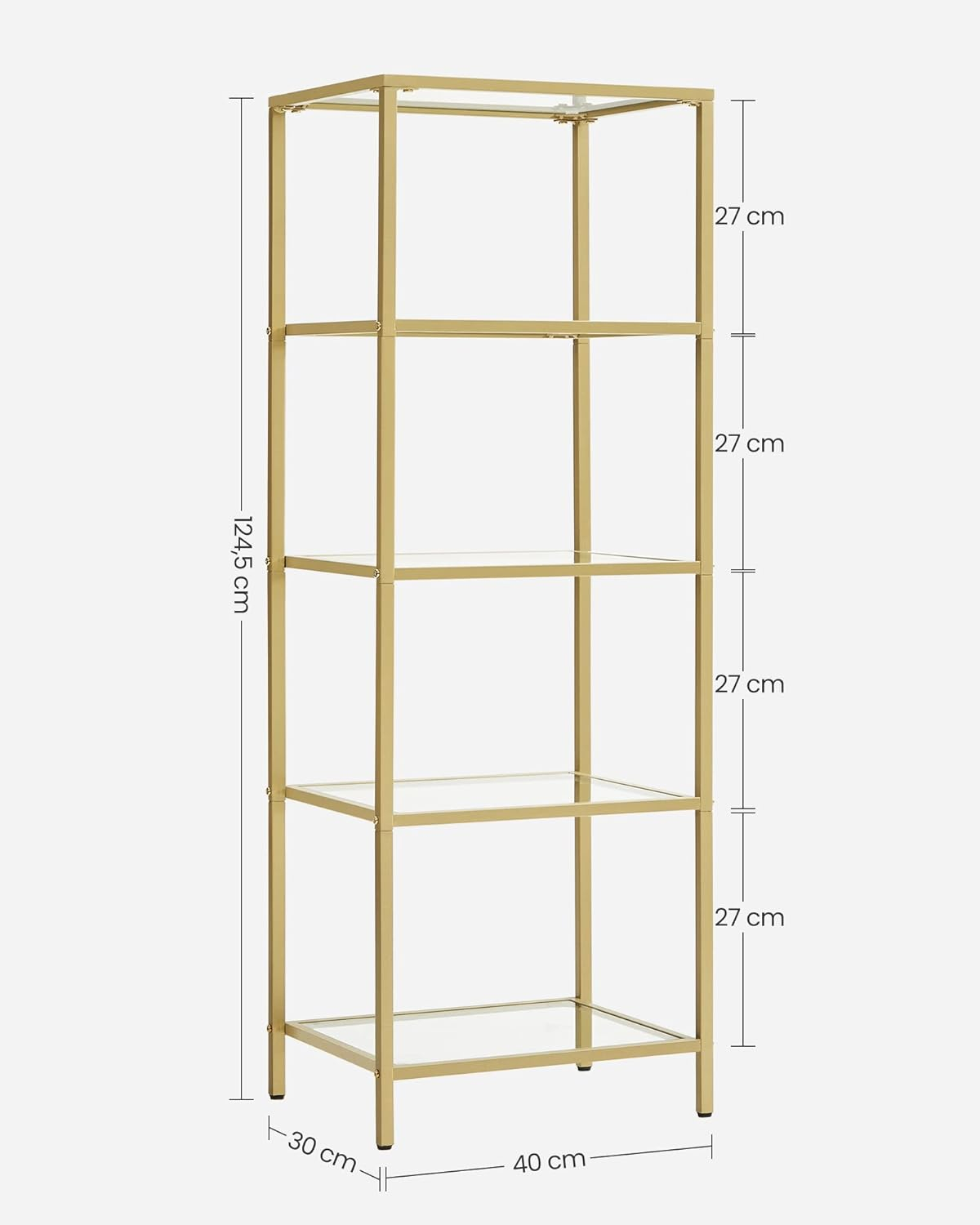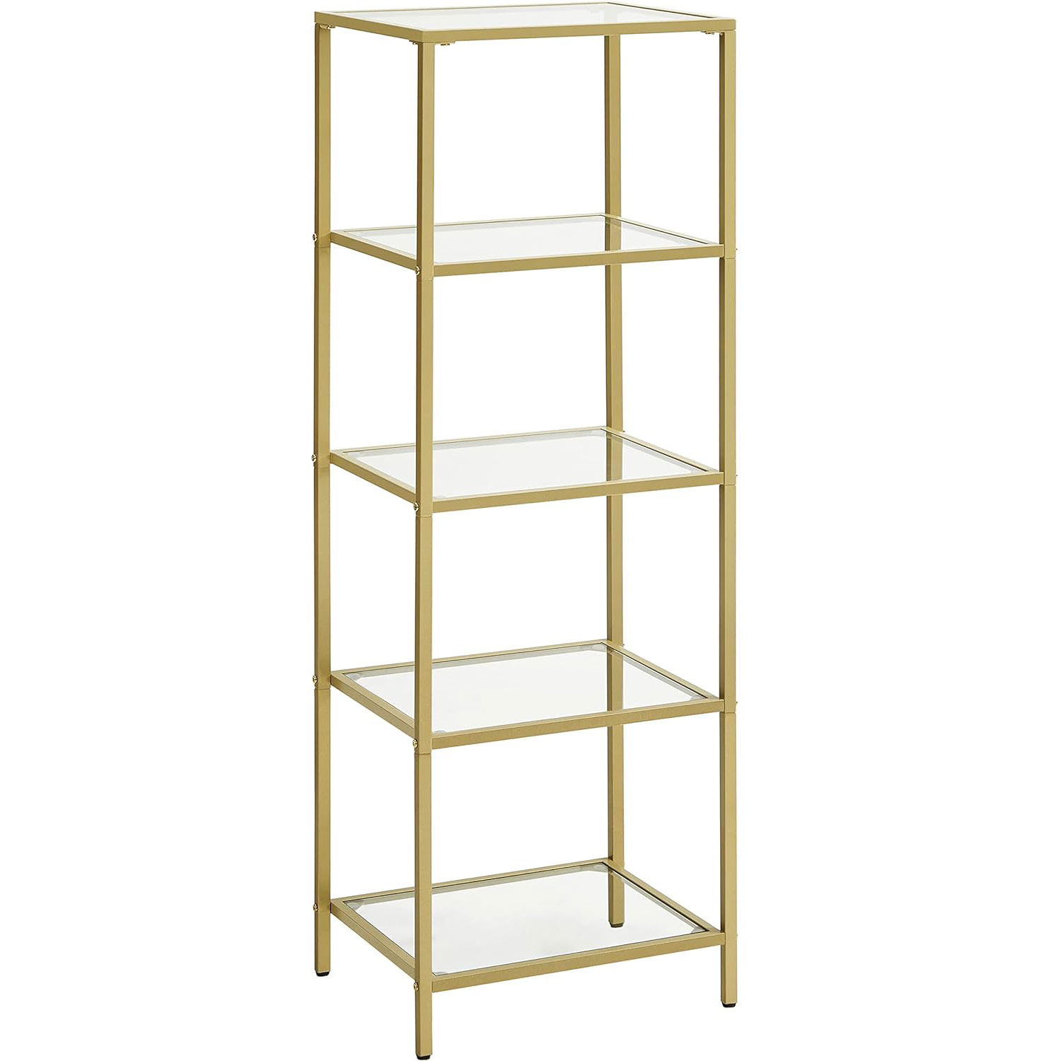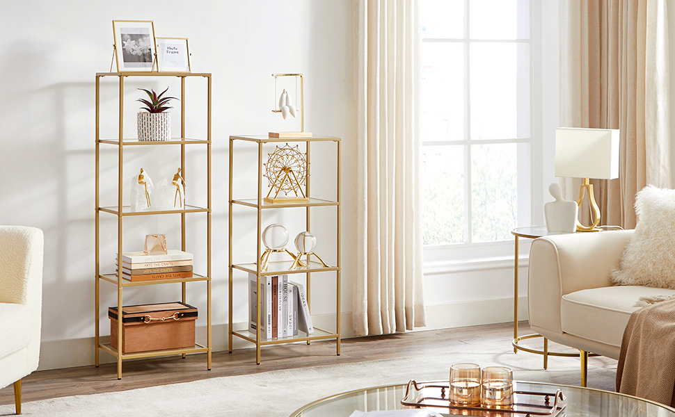 VASAGLE VASAGLE Raft cu trepte pentru dormitor, 5 etaje, din sticla securizata, cadru din otel, 30x124x40cm, auriu