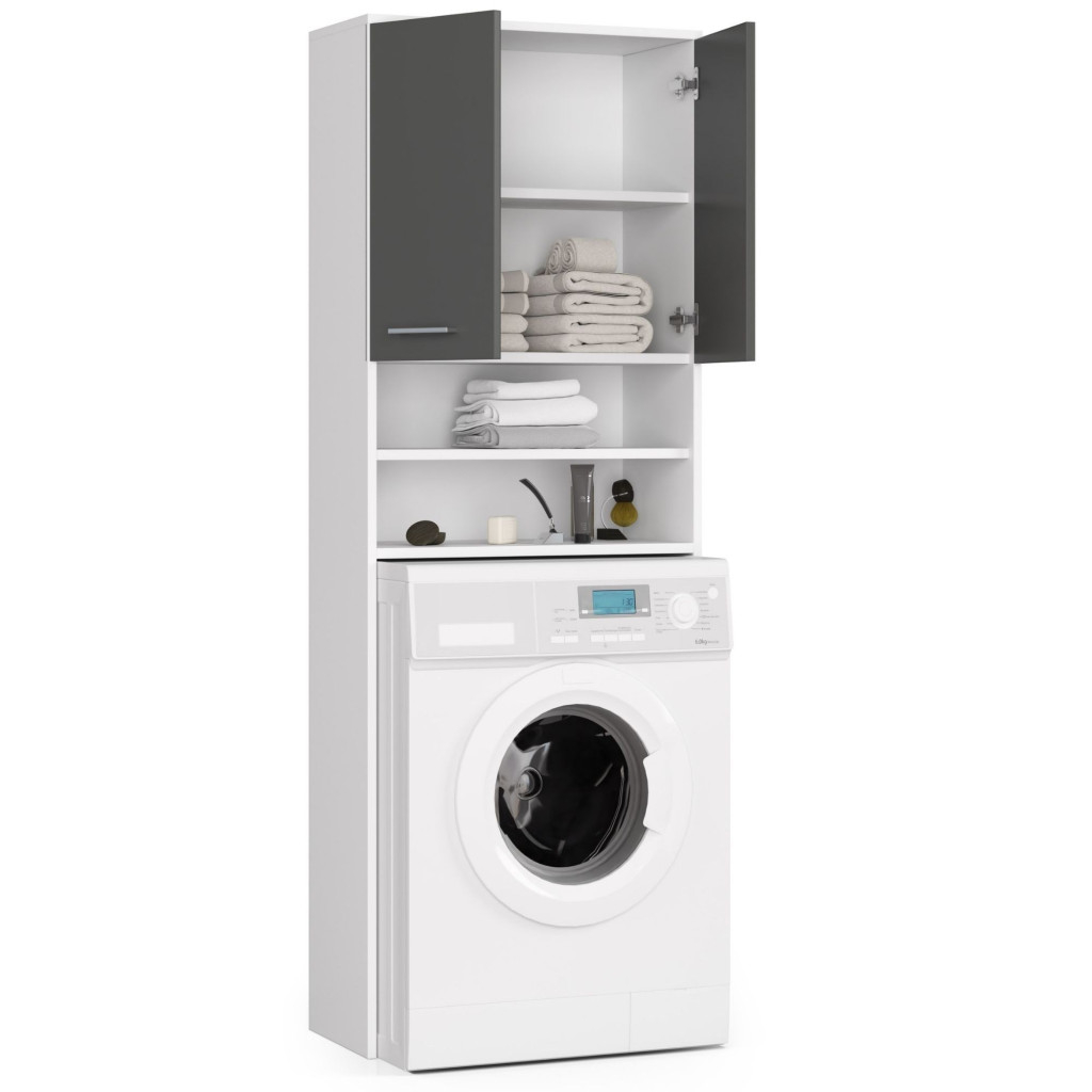Dulap baie inalt pentru spatiu deasupra masinii de spalat, cu usi si polite, 64x30x180 cm, alb si grafit