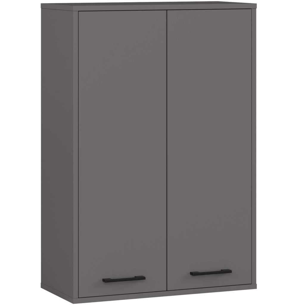Dulapul suspendat FIN gri grafit ofera o solutie eleganta si practica pentru organizarea spatiului din baie. Cu doua usi si patru rafturi interioare, permite pastrarea ordonata a produselor de igiena si a accesoriilor. Realizat din PAL laminat Kronospan rezistent la umiditate si protejat cu margini ABS, acest dulap se remarca prin durabilitate si finisajul mat modern. Designul minimalist si manerele negre adauga un accent sofisticat oricarui decor de baie.