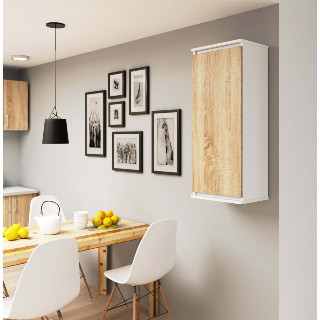 Dulapul suspendat CLP alb/sonoma imbina eleganta moderna cu functionalitatea practica, fiind ideal pentru living, dormitor sau birou. Combinatia intre nuanta naturala stejar sonoma si finisajul alb mat creeaza un contrast armonios si atemporal. Cele trei rafturi interioare ofera spatiu amplu pentru depozitarea articolelor utile sau decorative, iar constructia din PAL laminat asigura durabilitate si rezistenta in utilizarea zilnica.