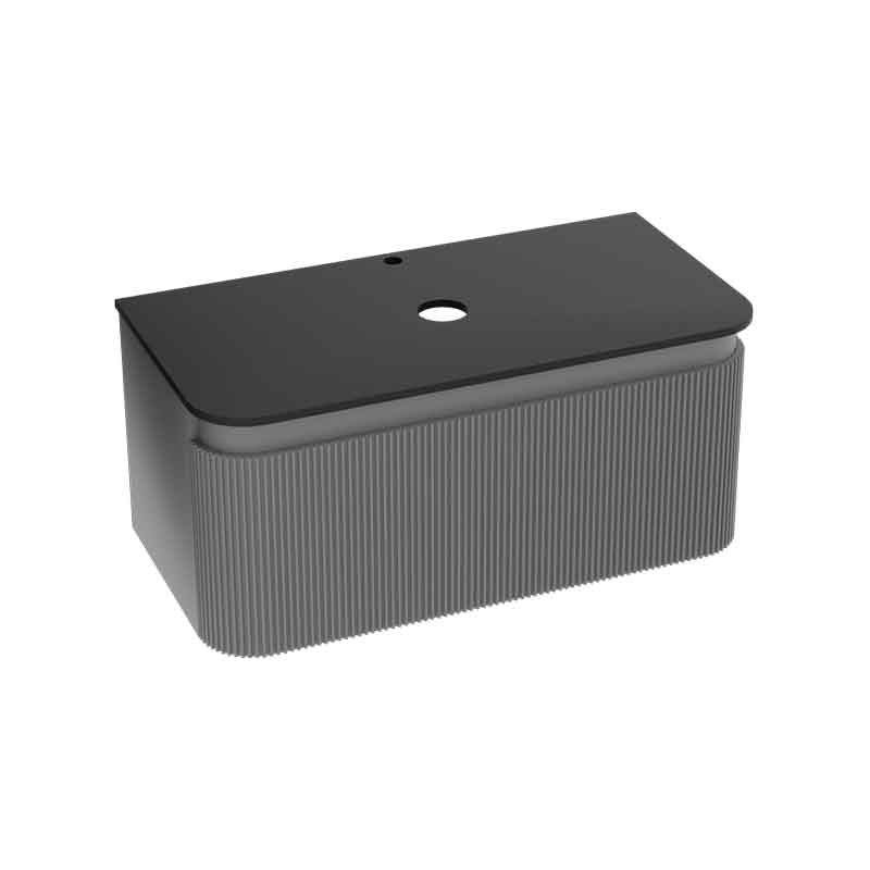 Design rafinat și echilibrat – linii curate, colțuri rotunjite și front riflat care oferă mobilierului un aspect elegant, fără a aglomera vizual spațiul.