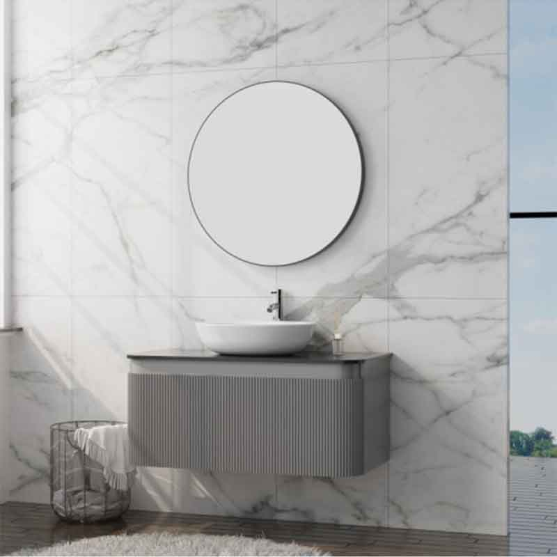 Spectrum Milena 100 are un design subtil și echilibrat, cu linii curate, colțuri ușor rotunjite și un front riflat fin, care adaugă un detaliu elegant fără să încarce vizual mobilierul. Finisajul mat scoate în evidență textura și oferă un aspect modern, potrivit pentru o baie aerisită și luminoasă.