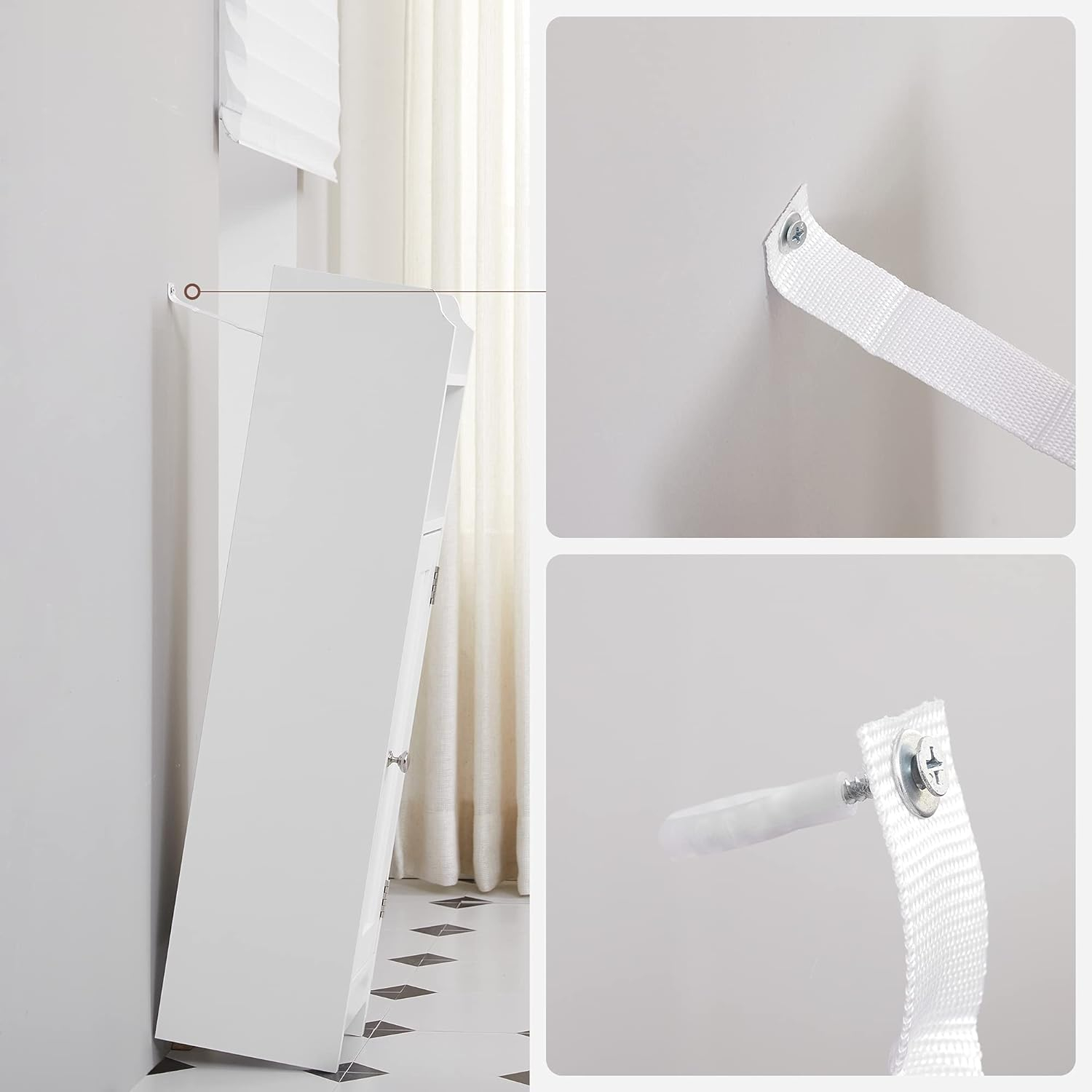 Placa MDF asigura rezistenta si kitul anti-basculare previne rasturnarea mobilierului pentru siguranta. Acesta este un dulap de colt fiabil si subtire in care puteti avea incredere! Cu instructiuni clare si piese numerotate, veti monta acest dulap foarte usor.