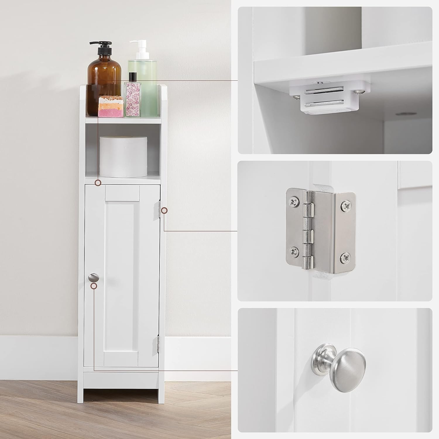 VASAGLE Dulap de baie, pentru spatii inguste, cu rafturi si usa, 18x20x80 cm, alb