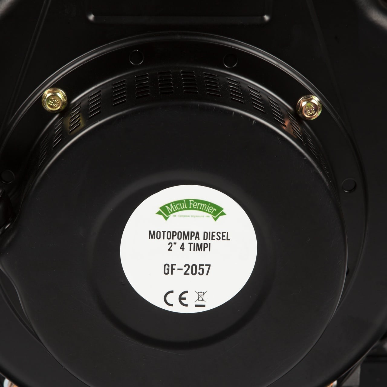 Motopompa diesel Micul Fermier GF-2057 este un produs robust, eficient si fiabil ce necesita o in tretinere minimala, cu un consum redus de ulei si motorina. Constructiv acesta pompa este actionata de un motor diesel in patru timpi cu aprindere prin compresie CI (injectie directa), racit cu aer si cu un singur cilindru vertical ce actioneaza un arbore ori zontal.