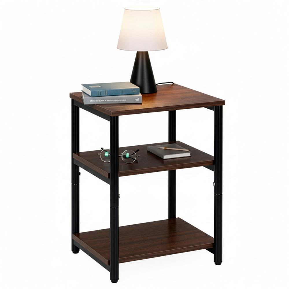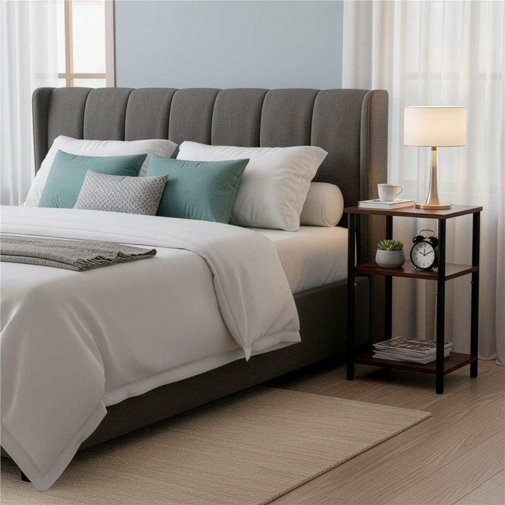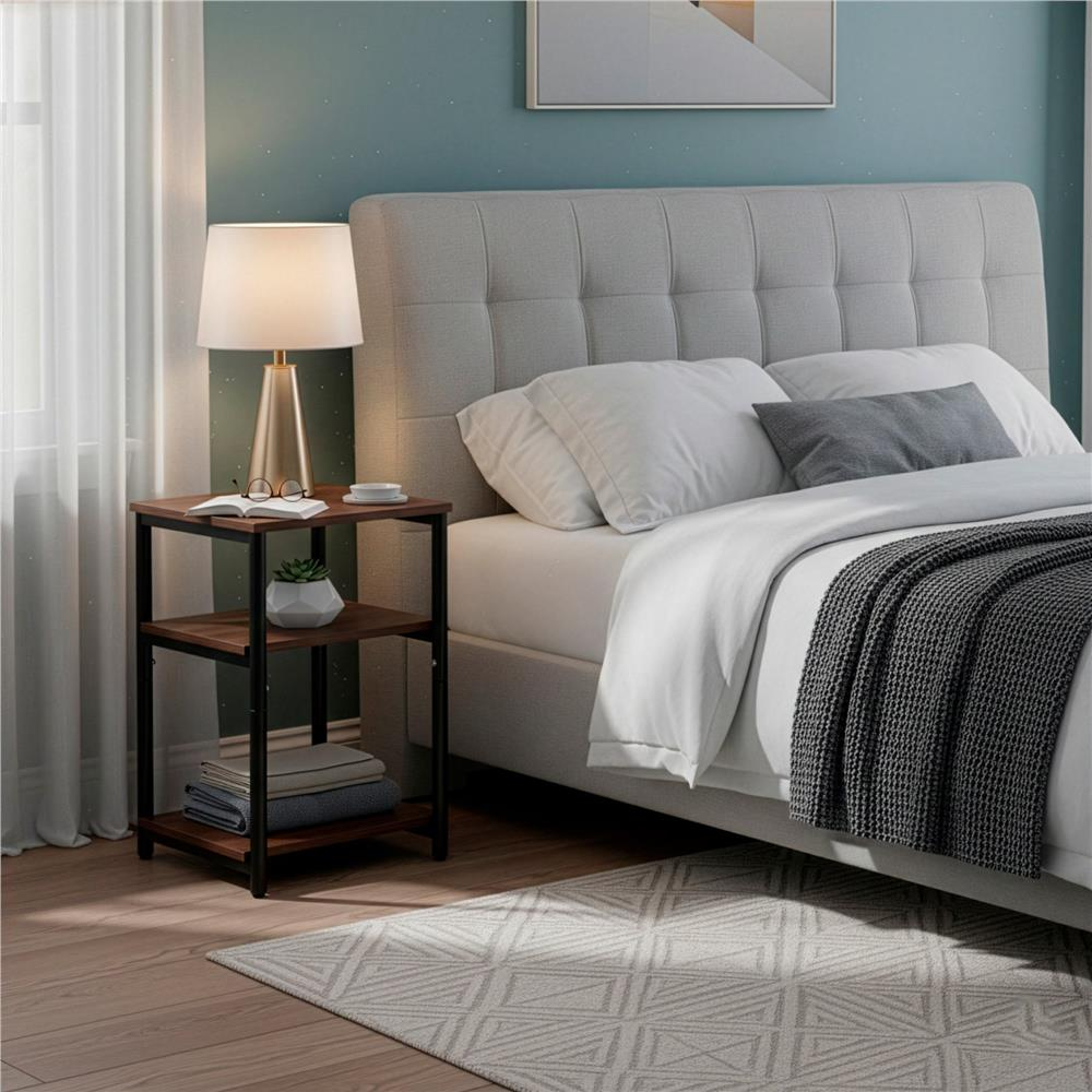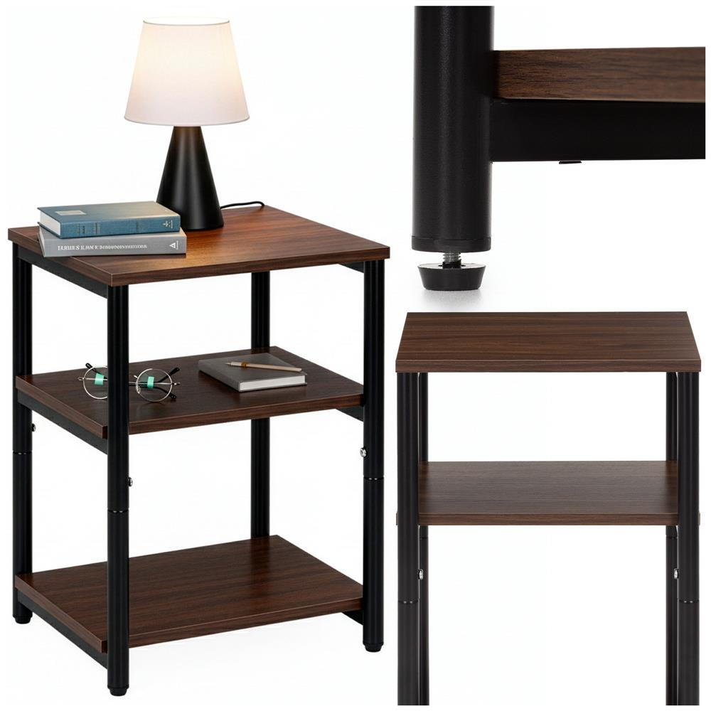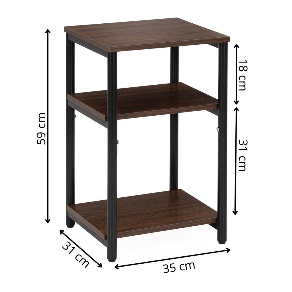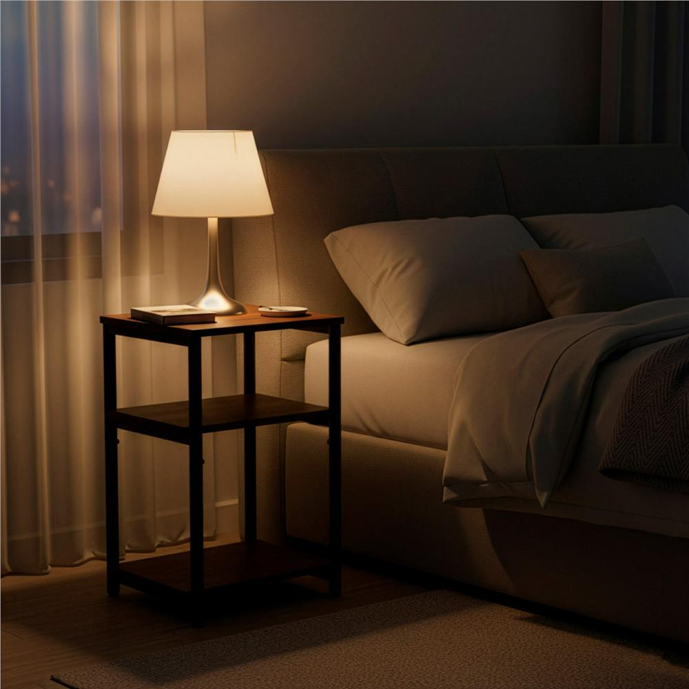 Noptiera compacta cu 3 rafturi, ideala pentru organizarea obiectelor esentiale langa pat. Constructia metalica ofera stabilitate, iar rafturile din PAL sunt potrivite pentru carti, lampa, telefon sau accesorii personale.
