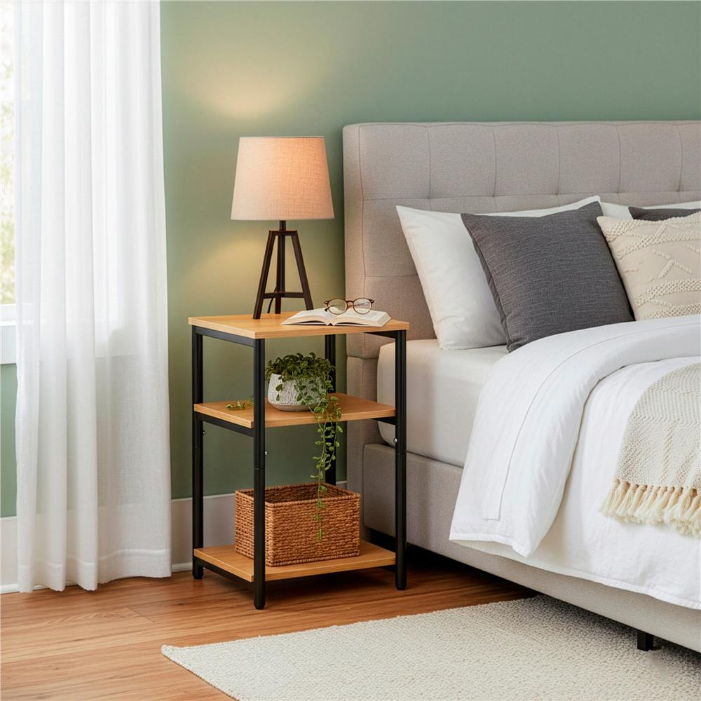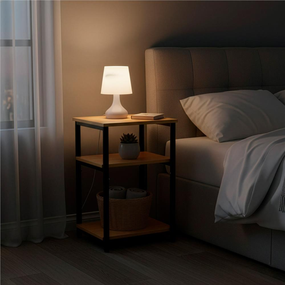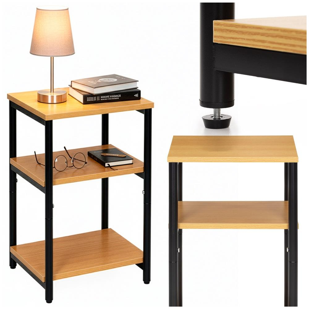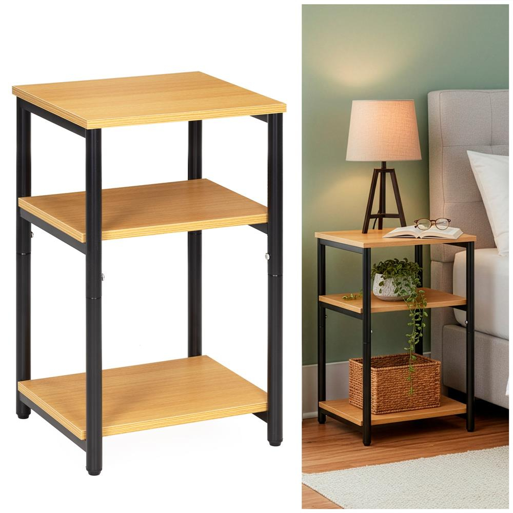 Noptiera compacta cu 3 rafturi, potrivita pentru organizarea eficienta a spatiului de langa pat. Structura metalica ofera stabilitate, iar rafturile din PAL sunt ideale pentru carti, lampa sau obiecte personale.