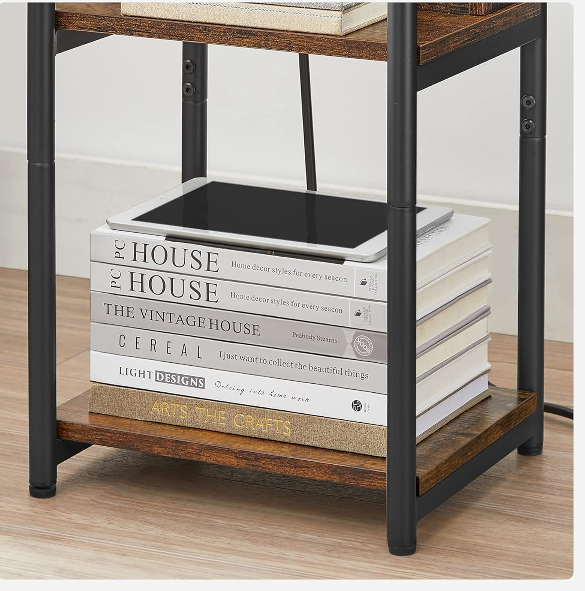 VASAGLE VASAGLE Noptiera cu prize si USB, 3 rafturi, stil industrial, 30x34x58 cm, maro rustic