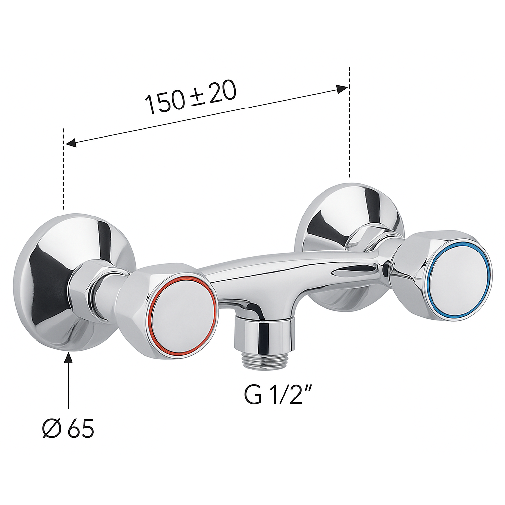Se monteaza pe perete si este compatibila cu racord standard G 1/2", ceea ce permite conectarea usoara la furtunul de dus. Distanta intre axe este de 150 ± 20 mm, iar rozetele cu diametru de 65 mm asigura o fixare stabila si un aspect estetic in baie.