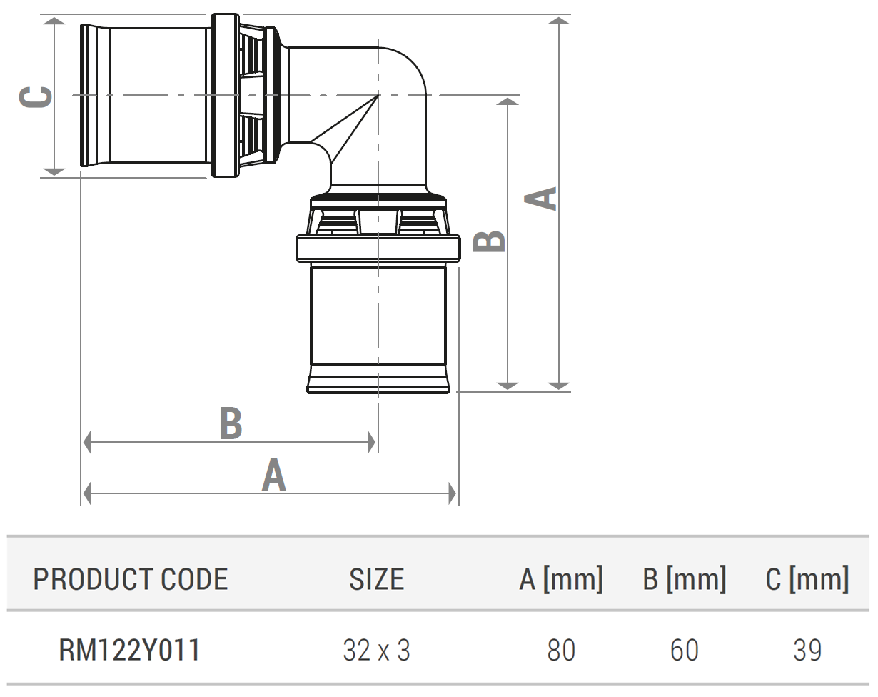 Fitingul RM122Y011 este realizat din alama CW617N conform UNI EN 12165, cu manson de presare din otel inoxidabil AISI 304 si garnituri duble O-ring din EPDM negru (EN 681-1). Conexiunea este proiectata pentru a garanta o etansare perfecta si o fixare ferma a tevii in zona de presare.