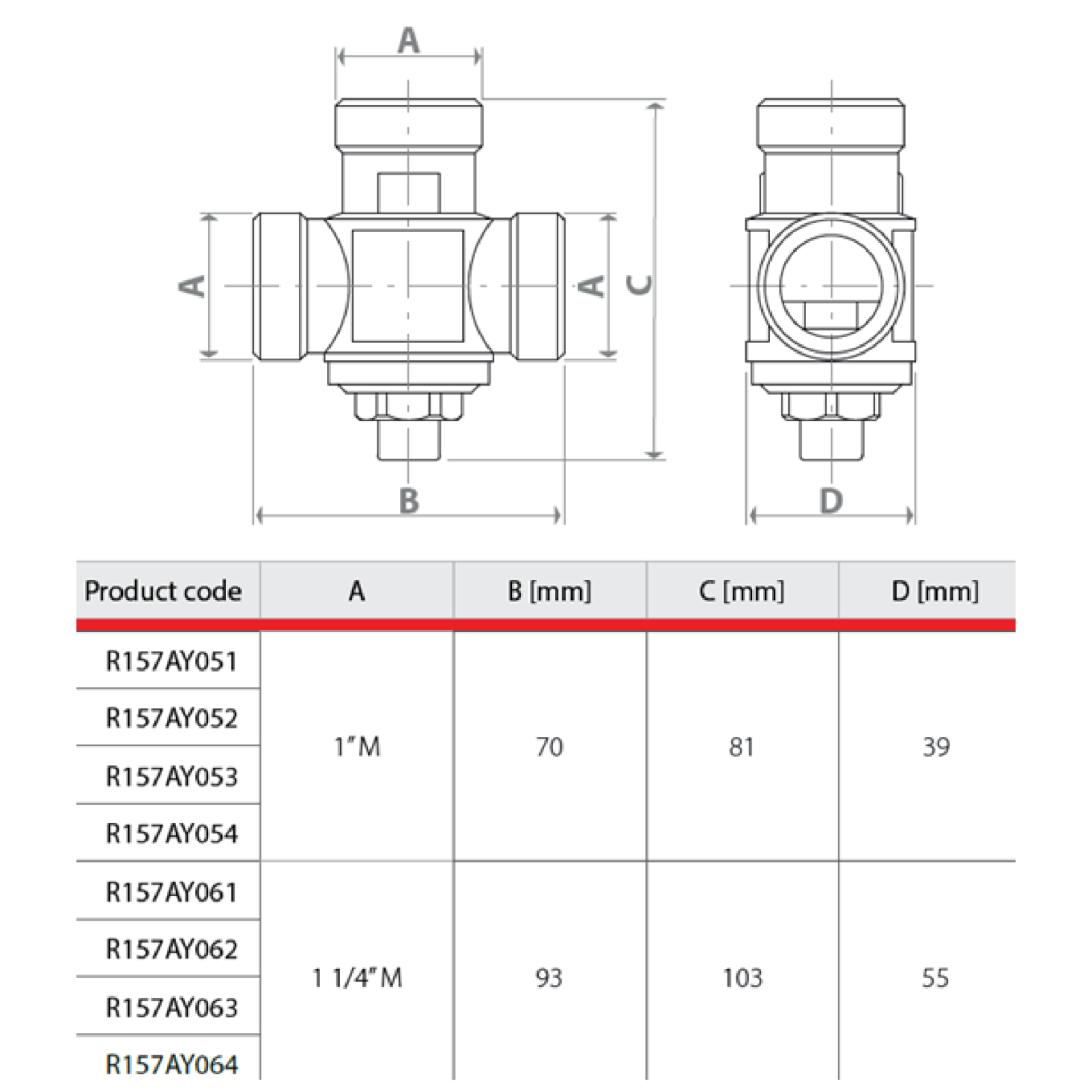 Supapa termostatica anticondens Giacomini R157AY062, DN32, 55°C, alama, filet exterior, pentru cazane pe lemne si peleti