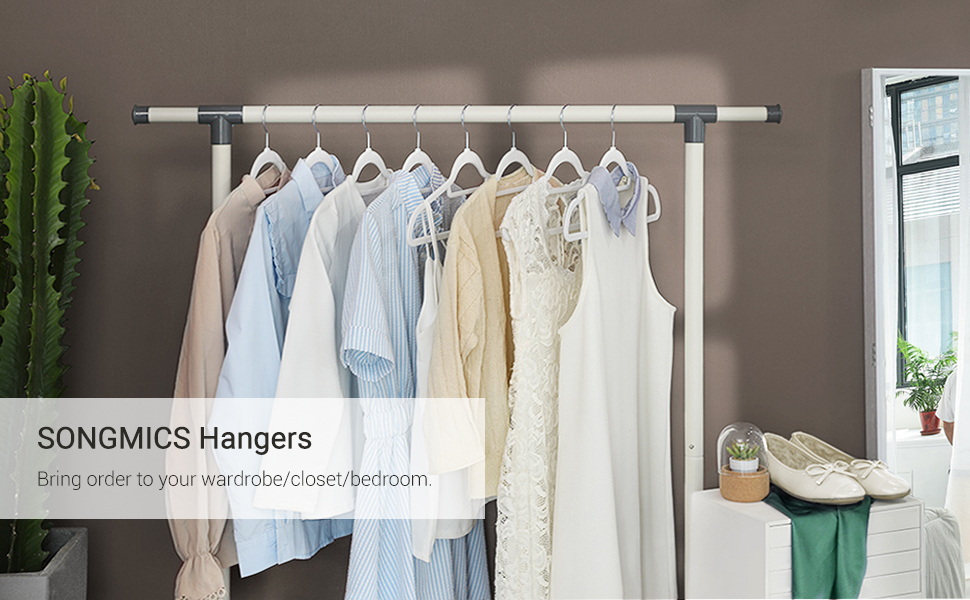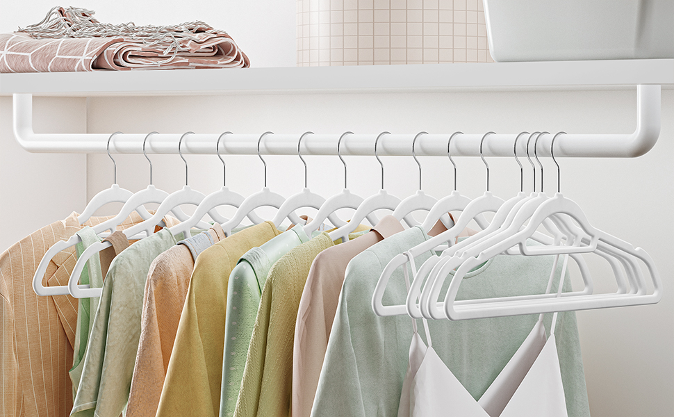 SONGMICS Set de 50 de umerase pentru haine, anti-alunecare cu catifea, bara de cravata si carlig pivotant, 43,5 cm, alb