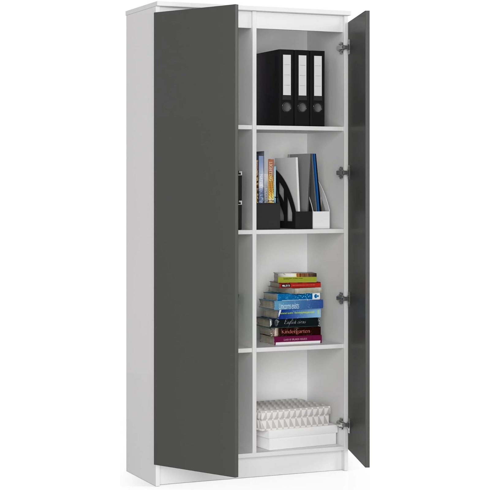 Biblioteca spatioasa pentru birou, conceputa pentru organizarea eficienta a dosarelor A4, cartilor si documentelor. Designul minimalist se integreaza perfect in spatiile moderne.