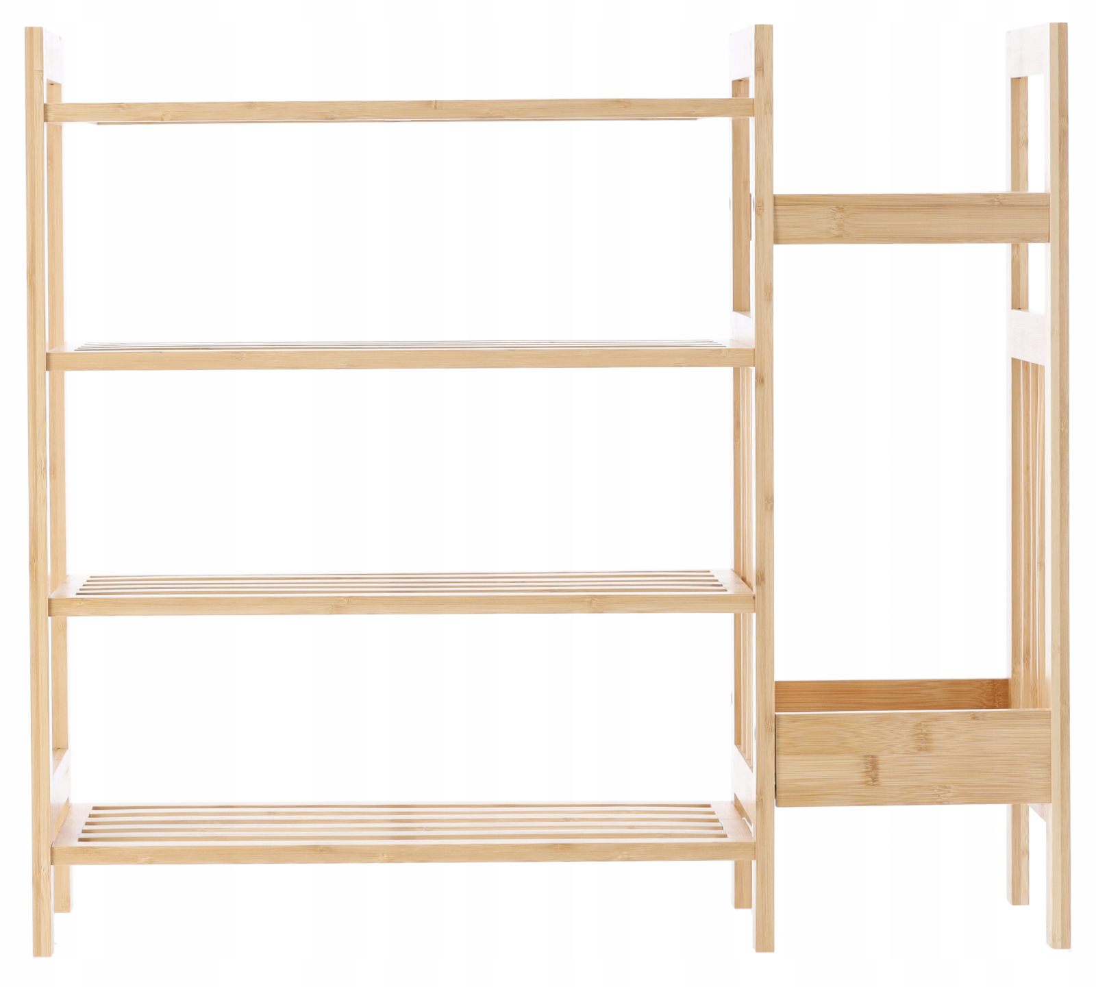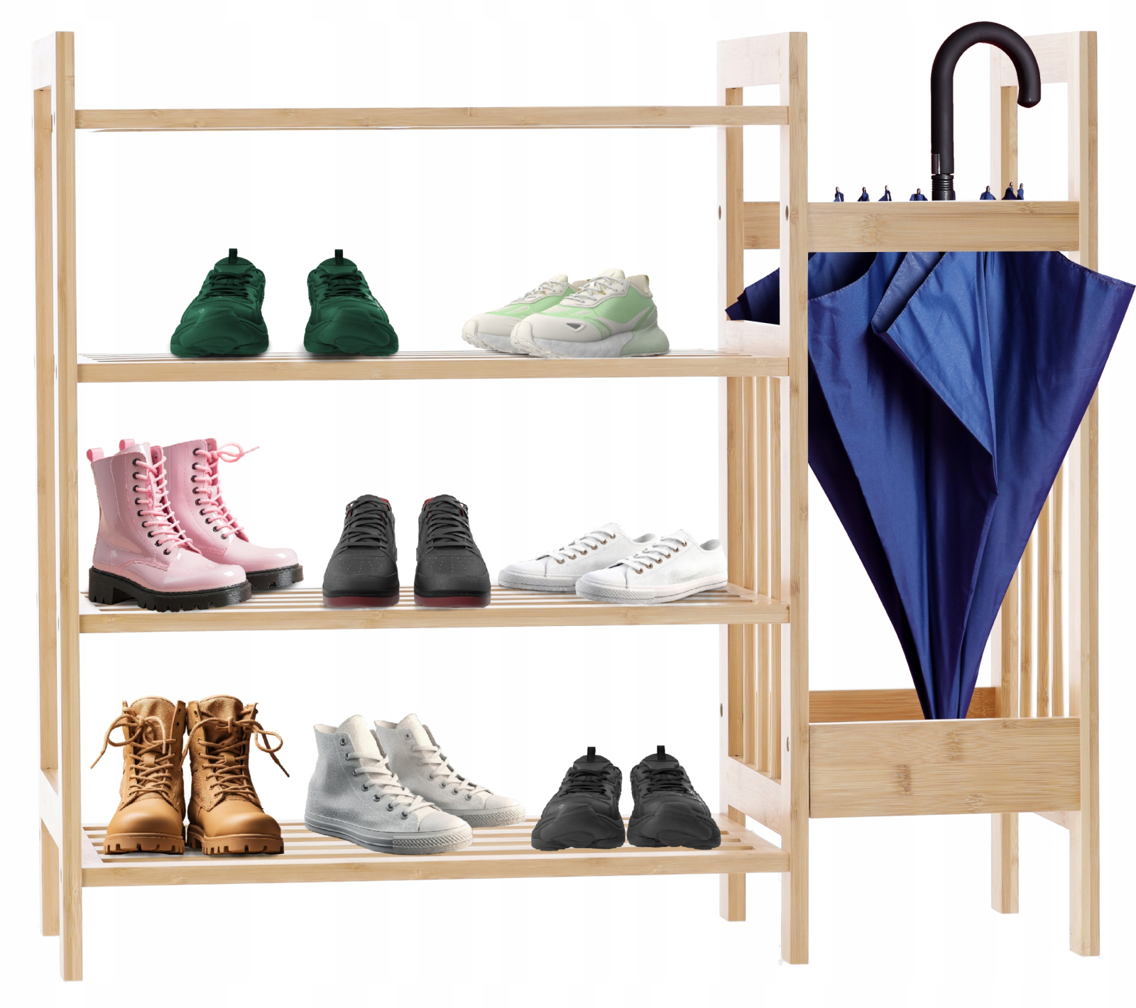 Dimensiuni: lungime: 73,5 cm latime: 28 cm inaltime: 66 cm Un suport de pantofi din bambus pe 4 niveluri cu un raft lateral suplimentar pentru umbrele este o solutie eleganta si functionala pentru depozitarea pantofilor si a umbrelelor. Fabricat din bambus de inalta calitate, acest raft combina farmecul natural cu durabilitatea. Este conceput pentru a organiza spatiul din interiorul casei sau al holului, oferind posibilitatea depozitarii pantofilor pe patru nivele, ceea ce va permite sa mariti ordinea si sa economisiti spatiu. Un raft lateral suplimentar pentru umbrele este o solutie practica, protejand articolele de udarea accidentala a altor articole de imbracaminte. Material: Fabricat din bambus de inalta calitate, raftul este durabil, rezistent la umezeala si ofera interiorului un aspect natural, cald. Are 4 nivele, ceea ce va permite sa depozitati mai multe perechi de pantofi in functie de marimea acestora. Raft lateral suplimentar pentru umbrele:O solutie inovatoare care va permite sa depozitati umbrele, ceea ce creste functionalitatea raftului.Designul elegant al raftului din bambus adauga un farmec natural si se armonizeaza cu diverse stiluri de interior, de la modern la clasic. Asamblarea raftului este foarte rapida si simpla.