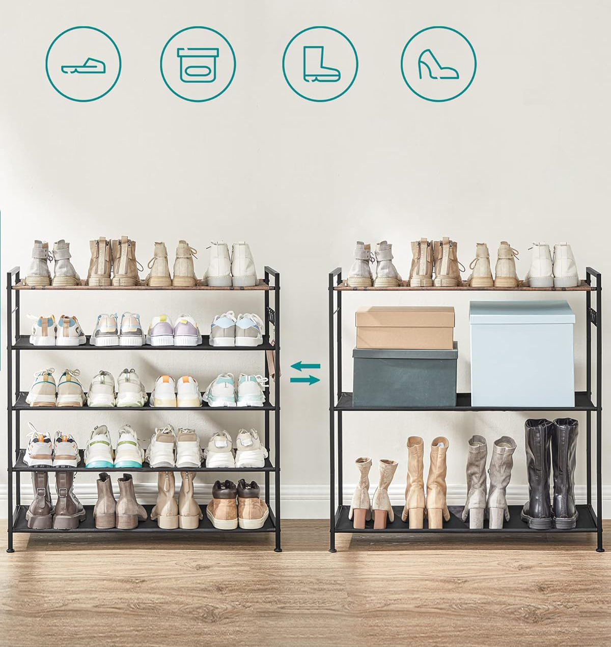 SONGMICS Raft de depozitare pantofi, metalic, 5 nivele din tesatura oxford, pentru 20-25 perechi, 29x89x93cm, maro rustic si negru