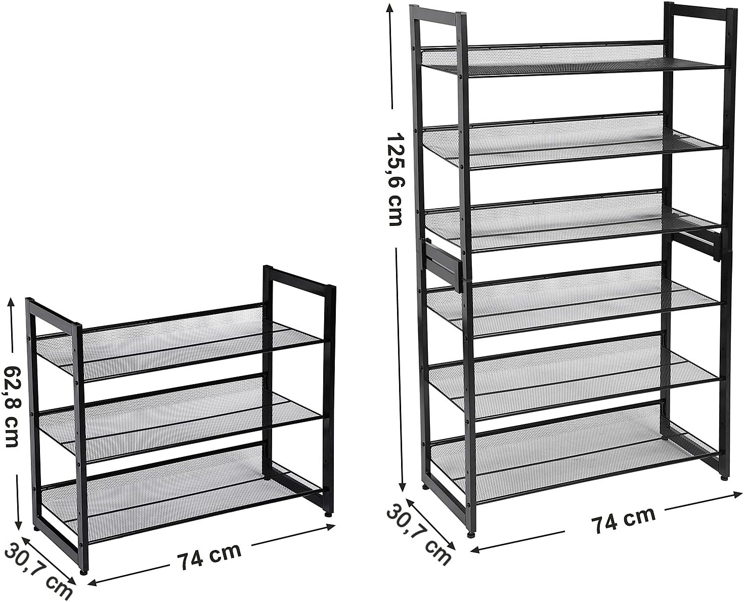 3 niveluri, gazduieste 9-12 perechi: Acest organizator de pantofi cu 3 niveluri poate tine 3 perechi de pantofi pentru barbati sau 4 perechi de pantofi de dama pe fiecare nivel, oferind o casa pentru pantofii tai de zi cu zi.
