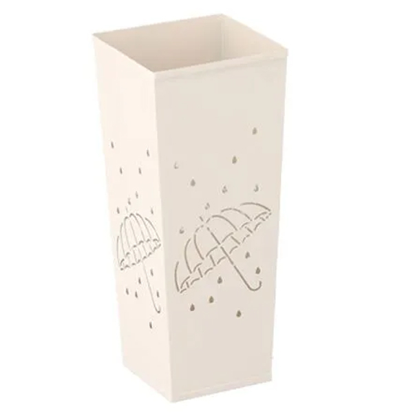 Un suport pentru umbrele practic si elegant, ideal pentru holuri sau intrari. Cu o forma patrata si design minimalist, ocupa putin spatiu si pastreaza zona curata si organizata. Culoarea alba si constructia metalica il fac potrivit pentru orice stil de interior.