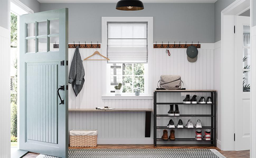 Caracteristici: Culori: Grege, negru Materiale: Placi de aglomerat, otel Dimensiuni: 100 x 30 x 92 cm (L x l x a) Greutate: 10,6 kg Capacitate de incarcare statica superioara: 10 kg. Capacitatea de incarcare statica a fiecarui raft: 5 kg. Despre acest articol Veti primi un raft care are o suprafata eleganta din PAL, 4 nivele negre din plasa pentru a va expune pantofii si un stil industrial care il transforma intr-un adevarat obiect decorativ.Design performant - 4 niveluri deschise din plasa metalica ofera mult spatiu pentru pantofii dvs. Suprafata de culoare gri va poate gazdui gentile, cheile si multe altele (suprafata superioara suporta pana la 10 kg, iar rafturile pana la 5 kg bucata).Cu doar cateva piese si instructiuni usor de inteles, acest suport pentru pantofi poate fi asamblat in doar cativa pasi simpli.Echipat cu picioare reglabile, acest suport de pantofi va fi in pozitie verticala chiar si pe un teren neuniform. In plus, gresia, parchetul si podelele dvs. din lemn sunt, de asemenea, protejate de zgarieturi cu aceste picioare.