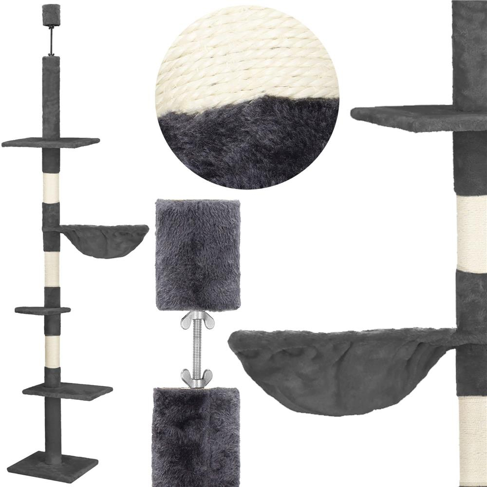 Ansamblu de joaca pentru pisici, tip stalp de catarat pana la tavan, inaltime reglabila, 240 - 265 cm, gri inchis