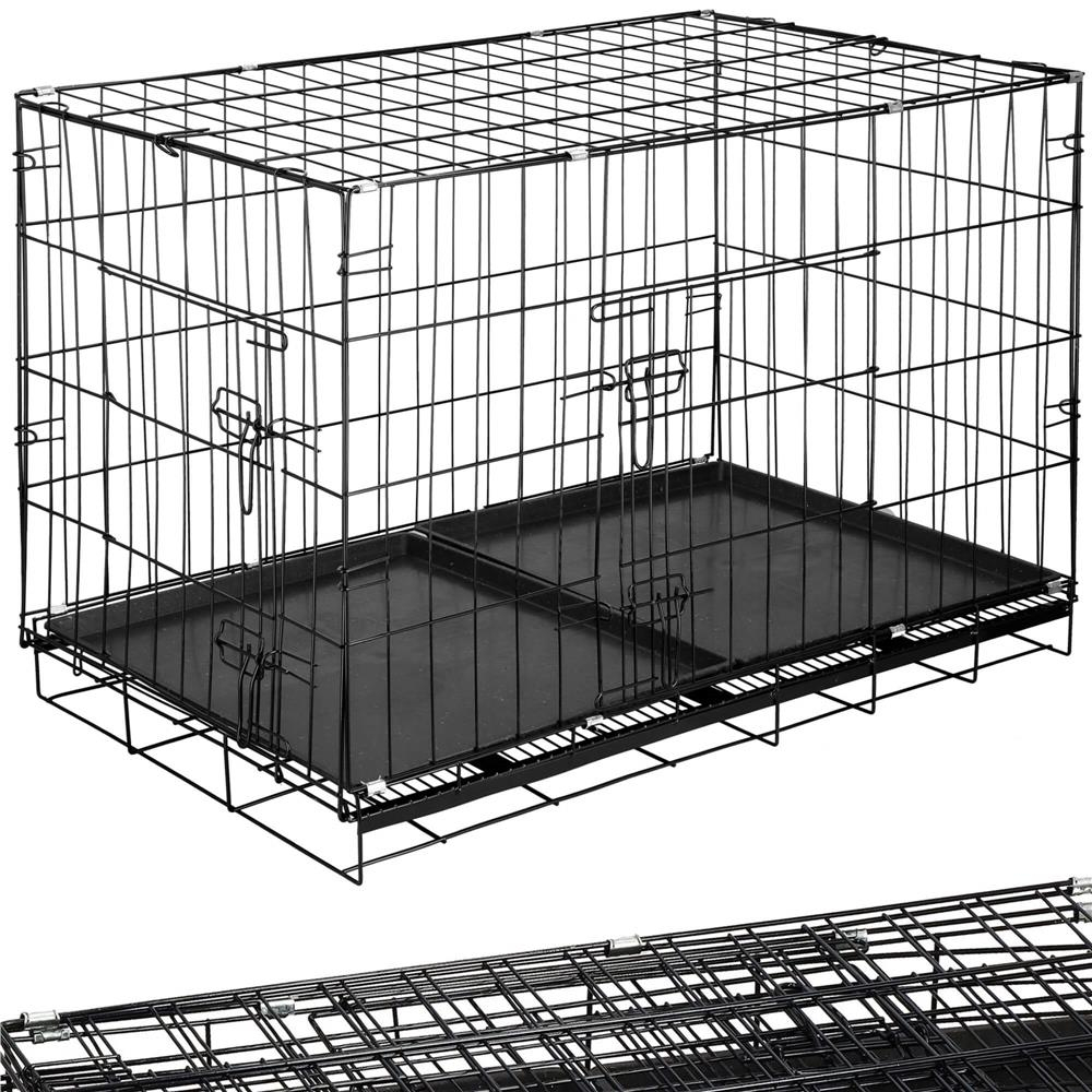 Cusca pentru animale, 2 usi, Pliabila din metal, XL, Negru, 100x70x60 cm