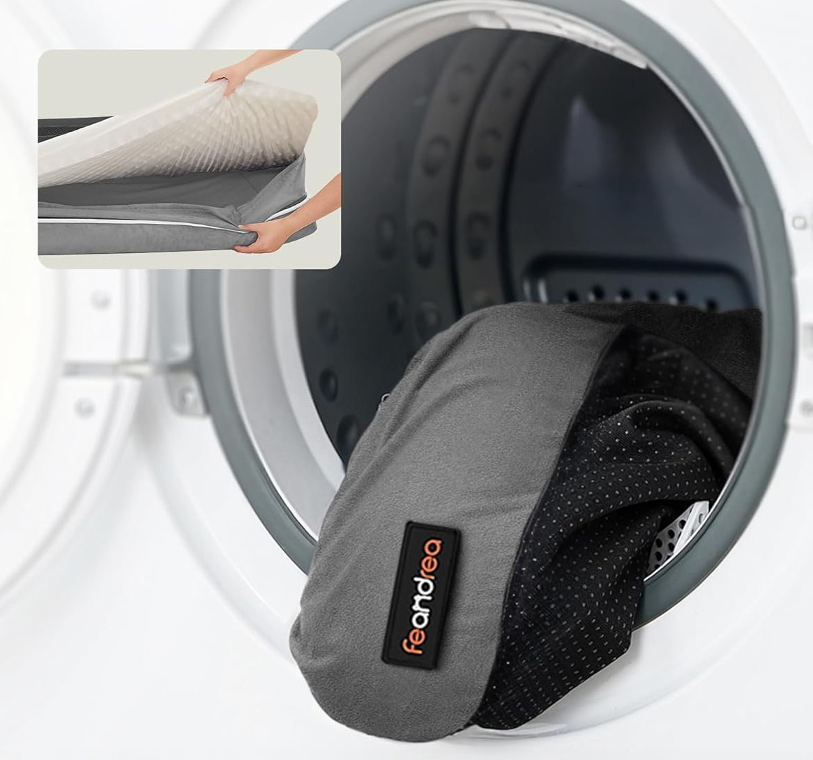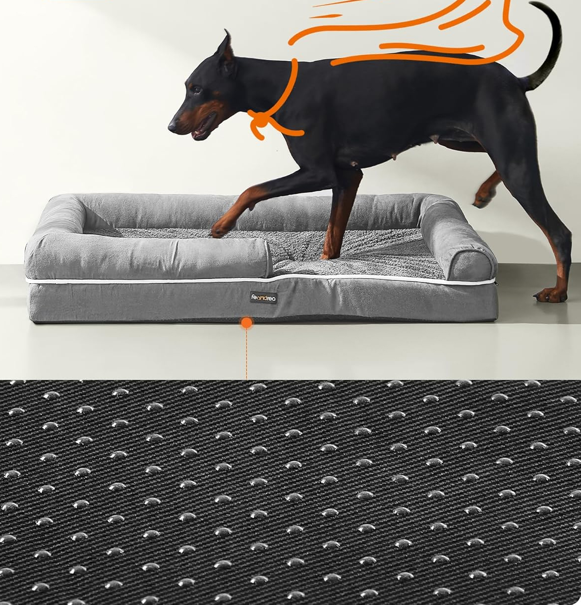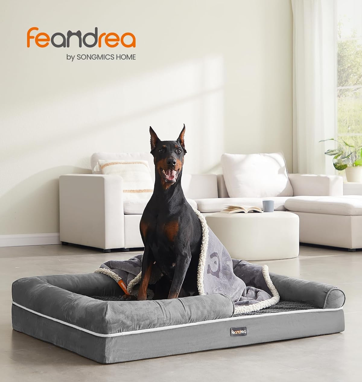 FEANDREA Pat ortopedic pentru caini, cu margini inaltate si husa detasabila, 120x85x20 cm, gri deschis