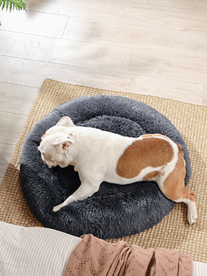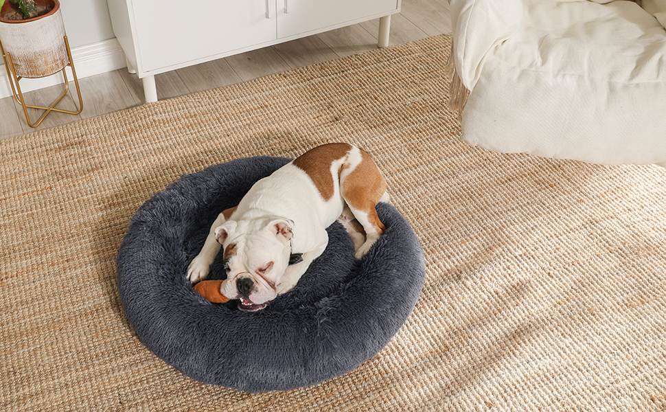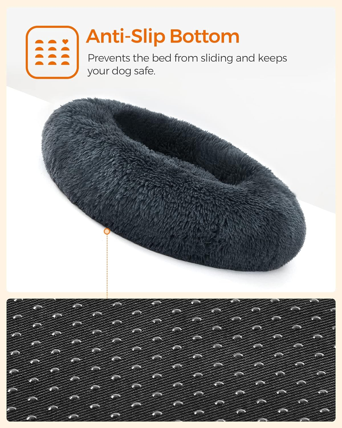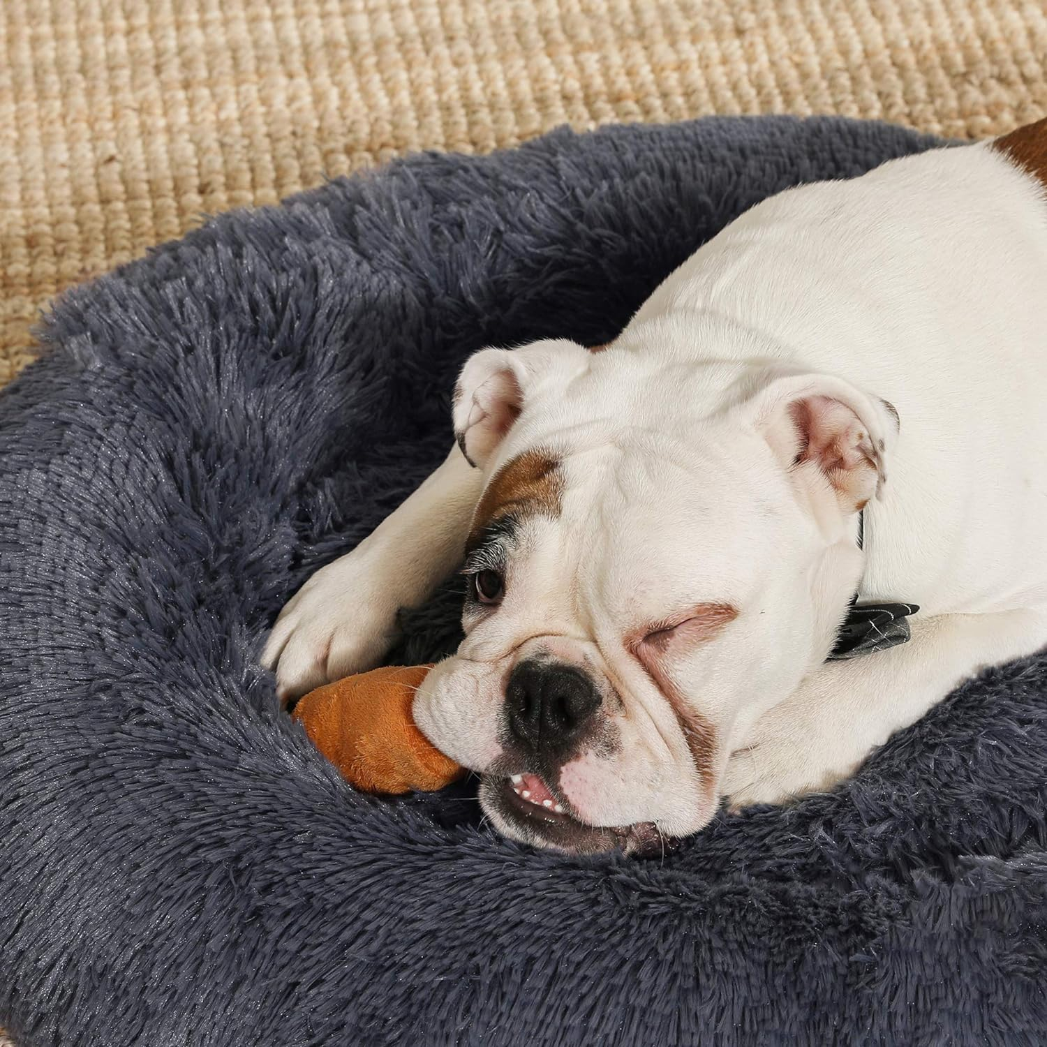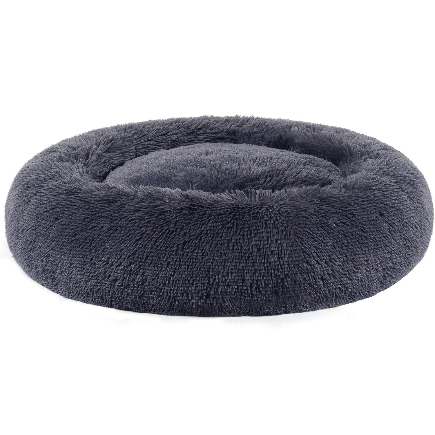 FEANDREA Pat pufos pentru caini si pisici, cu husa detasabila, lavabila, plus moale cu fir lung, 80 cm, gri inchis